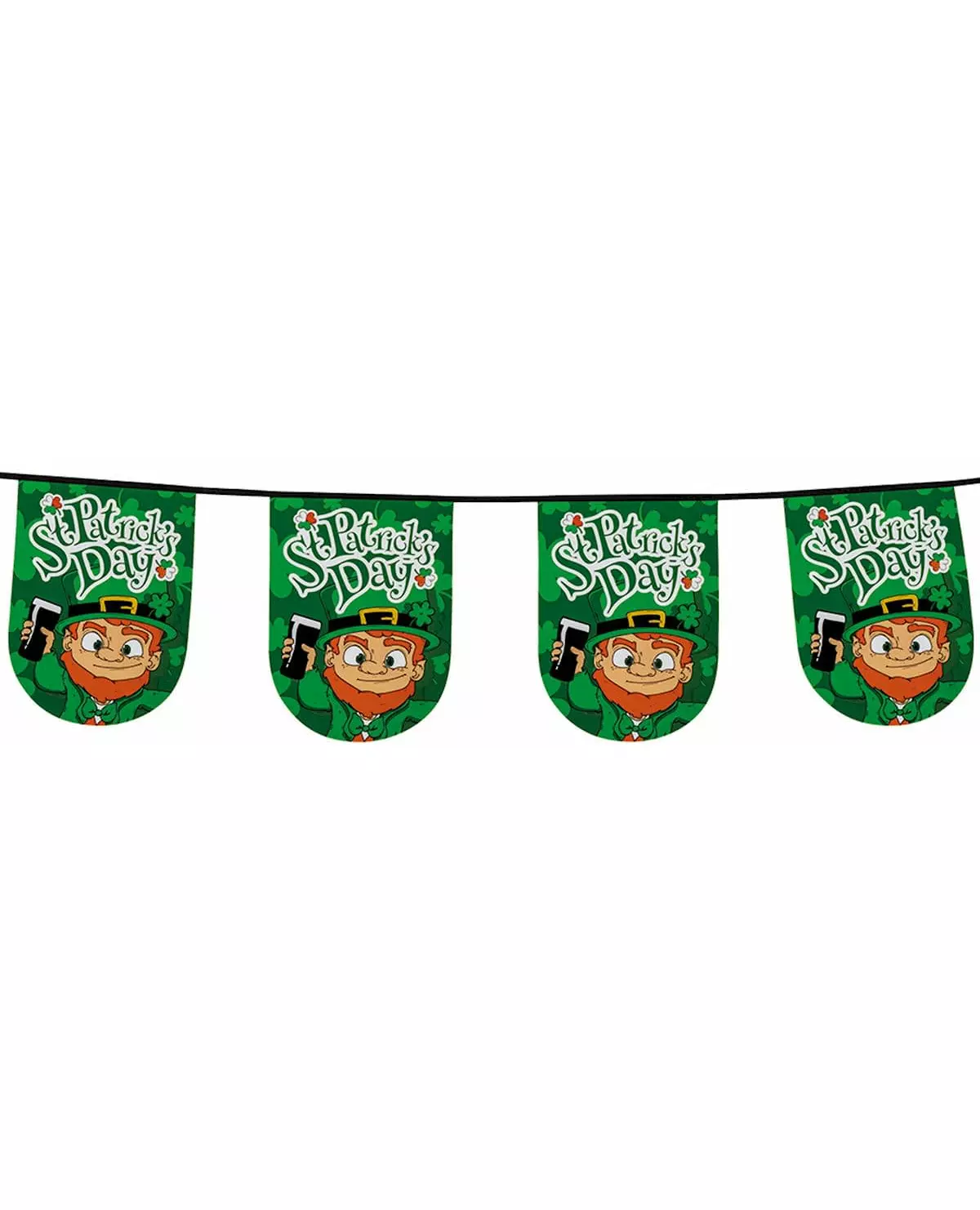 Skål! Denne St. Patricks dag-girlanderen består av grønne vimpler med inskripsjonen «Saint Patricks Day» og et trykk av en leprechaun som holder en øl i hånden. Den måler 6 m. Pynt hjemmet ditt på St. Patricks dag med denne dekorasjonen. Inkludert tilbehør: St. Patricks dag-vimpelgirlander (6 m) Målinformasjon: 6 m