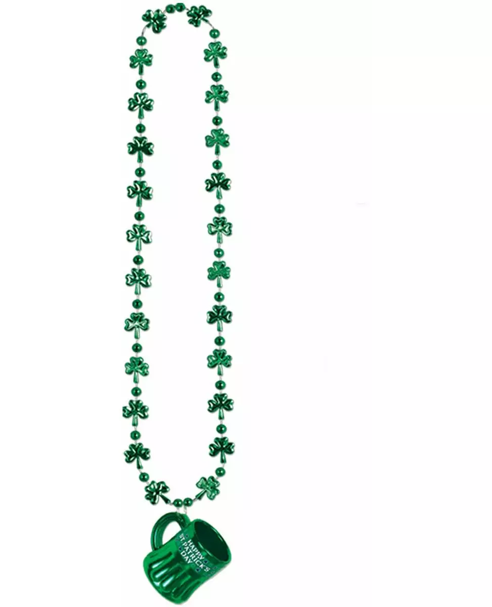 Et uunnværlig halskjede for å feire St. Patricks dag! Dette festlige halskjedet er det perfekte tilbehøret for å stolt vise frem Irlands farger på St. Patricks dag. Laget av runde perler og metalliske grønne kløver, har det en strålende glans som vil tiltrekke seg alles oppmerksomhet. Et lite ølkrus (ca. 4,5 x 3,5 cm) fungerer som et anheng for å fullføre antrekket med et snev av humor. Det er dekorert med inskripsjonen «Happy St. Patrick's Day», et ideelt nikk for å feire denne viktige høytiden i godt humør. Lett og enkelt å bruke, dette halskjedet vil være den originale detaljen for å perfeksjonere antrekket ditt under St. Patricks dag, enten det er om kvelden, i en parade eller på en pub med venner!. Inkludert tilbehør: 1 Seidelhalskjede Materiale: Plast