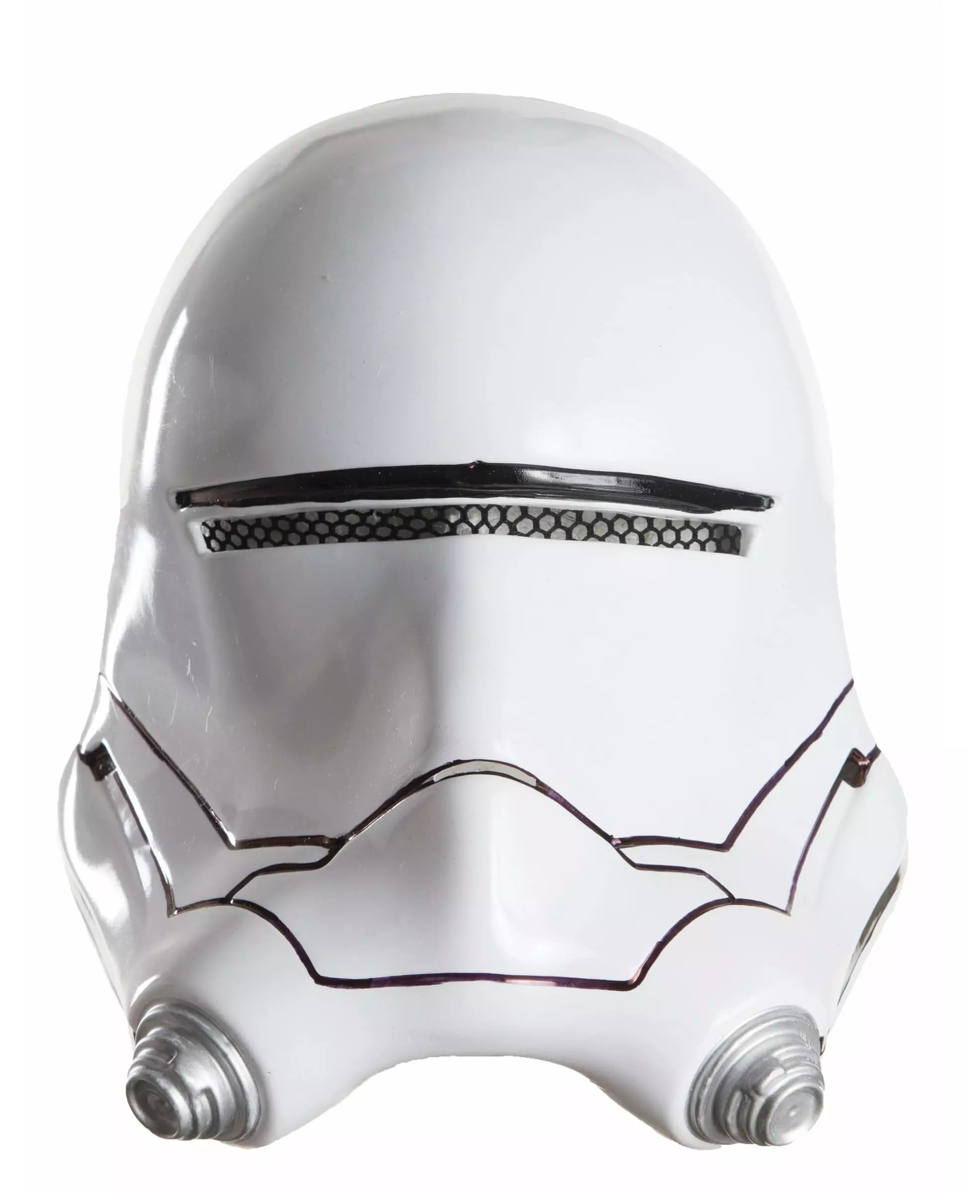 Bli en realistisk Flametrooper™ med denne masken! Denne Flametrooper™-halvmasken for voksne er offisielt lisensiert av Star Wars VII™. Denne plastmasken er hvit. Den har detaljer fremhevet i svart og sølv. En tynn åpning med svart netting lar deg se lett. Den har også en åpning ved nesen, slik at du kan puste lett. For maksimal komfort har den skumkvadrater inni. Denne halvmasken måler omtrent 26,5 cm i lengde og 22 cm på det bredeste punktet. Den er enkel å bruke med en strikk. Dette tilbehøret vil være perfekt for å fullføre et Flametrooper™-kostyme til karneval eller en Star Wars™-fest. Inkludert tilbehør: Halvmaske Materiale: Plast