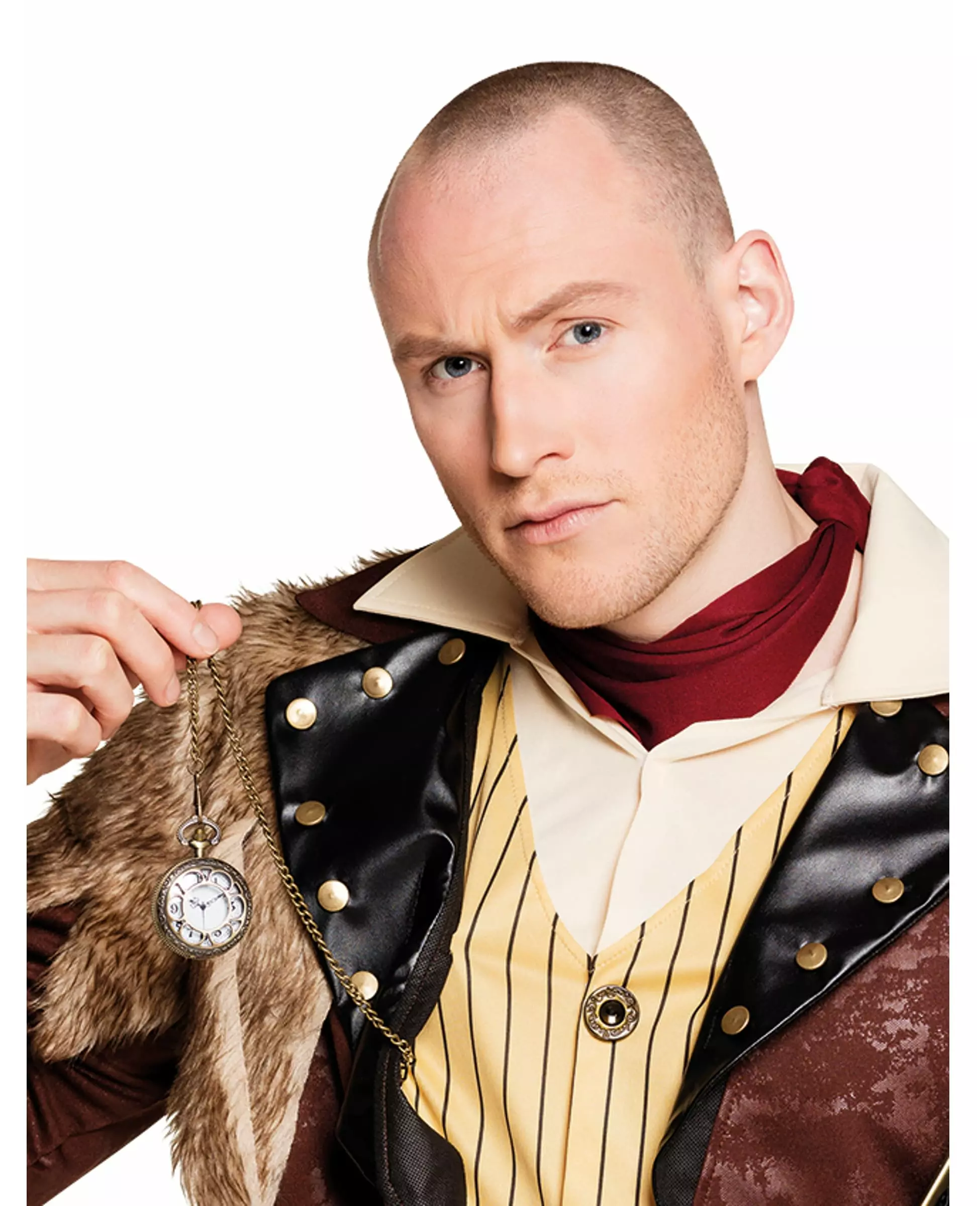 Legg til et retro-preg til steampunk-kostymet ditt. Dette lommeuret for voksne er et lommeur. Urkassen og lenken er metalliske med en aldret effekt. En klokke er trykt i midten. Den måler omtrent 4,5 cm i diameter. En lenke med krok lar deg holde klokken festet til en lomme. Denne retro-klokken vil være perfekt for å fullføre et steampunk-antrekk eller et dandy-kostyme på en utkledningsfest. Inkludert tilbehør: Falsk klokke med lenke.