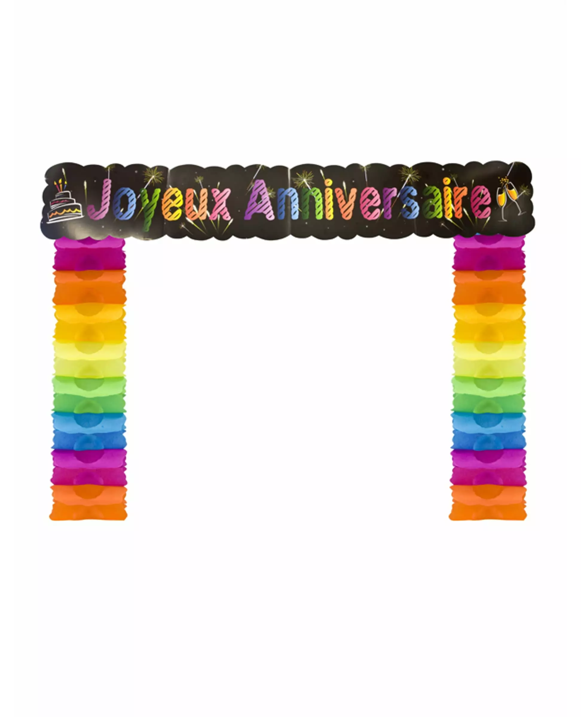 For en festlig dørdekorasjon! Denne dørdekorasjonen «Happy Birthday» måler omtrent 114 x 18,7 x 250 cm. Innskriften «Happy Birthday» er synlig på pappdelen, og flerfargede papirgirlandere faller langs døren. Denne dørdekorasjonen vil fullføre bursdagsdekorasjonen din perfekt. Inkludert tilbehør: 1 dørdekorasjon Materiale: Papir og papp