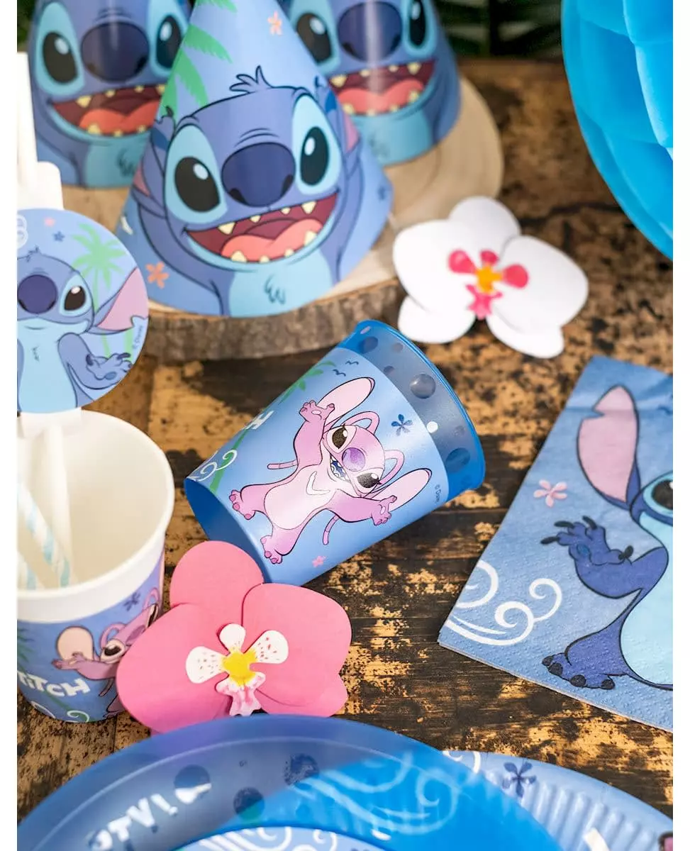 En vakker kopp til bursdagen! Denne gjenbrukbare koppen er laget av plast og har en kapasitet på omtrent 250 ml. Offisielt lisensiert fra Stitch™, den representerer den berømte Disney™-figuren Stitch™. Inni koppen finner du inskripsjonen «Party» med hvite bokstaver. Gi denne vakre gjenbrukbare koppen, offisielt lisensiert fra Stitch™, til barnet ditt, de vil bli henrykt! Inkludert tilbehør: 4 kopper Materiale: Plast