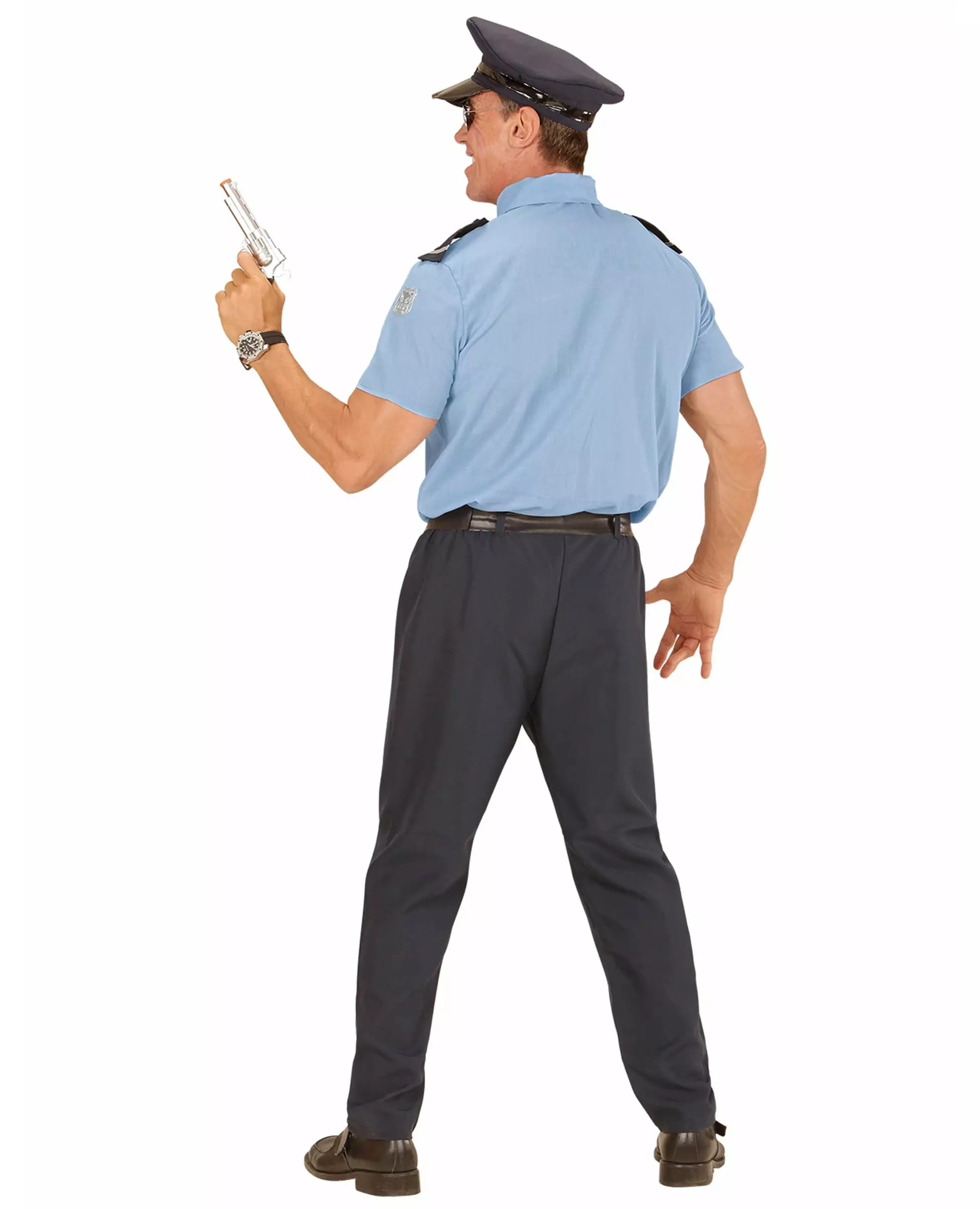 Hendene opp! Dette blå politibetjentkostymet i pluss-størrelse er for voksne. Det inkluderer en skjorte, bukser, et belte, et slips og en caps. Politiskjorten er lyseblå med ordet «POLICE» skrevet på brystet (venstre side). Den har også en stripe på hver skulder. Buksene er marineblå, med et klassisk snitt. Beltet i kunstskinn er svart med en firkantet spenne. Et marineblått slips og en caps er inkludert. Capsen har et politimerke. Ta på deg dette politibetjentkostymet i stor størrelse til karneval eller en temafest! Inkludert tilbehør: Skjorte Bukser Belte Knyting Caps Materiale: 100 % polyester Vedlikehold: Håndvask