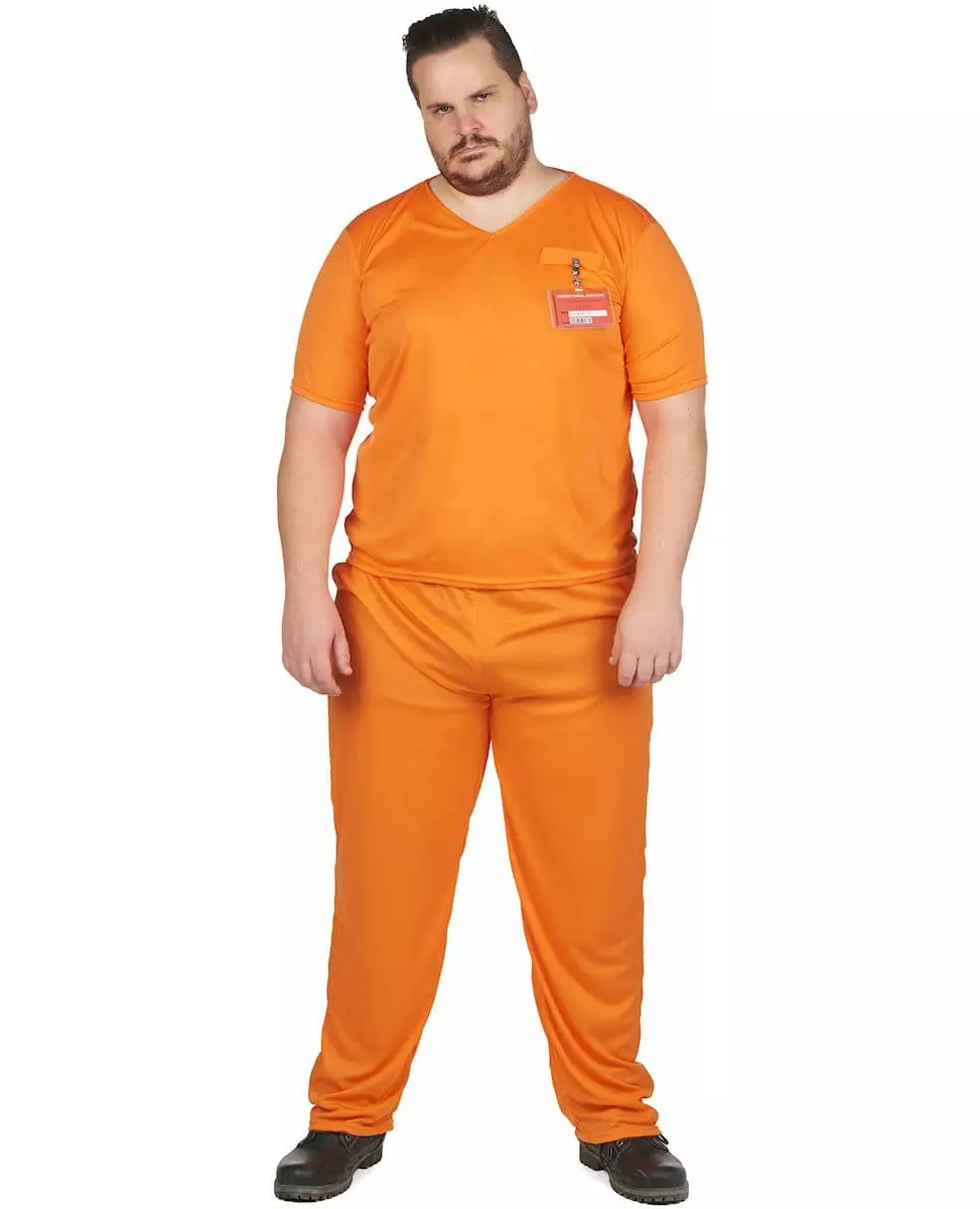 Du er i fengsel! Dette fangekostymet i stor størrelse er for voksne. Det består av en topp, bukser og et merke. Toppen av kostymet har korte ermer og er oransje. Buksene matcher toppen, som også er oransje. For å fullføre dette kostymet er et plastmerke tilgjengelig som kan festes direkte til toppen. Inskripsjonen «DOC» som betyr «Korreksjonsavdeling» er på baksiden av toppen. Dette fangekostymet vil være ideelt for å fullføre antrekket ditt til en utkledningsfest som Halloween eller karneval! Inkludert tilbehør: 1 topp 1 bukse 1 merke Materiale: Polyester Vedlikehold: Håndvask