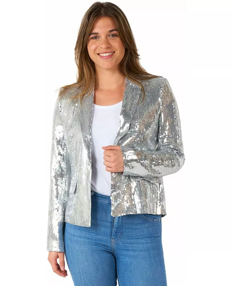 Suitmeister sølvfarget paljettblazerjakke til dame