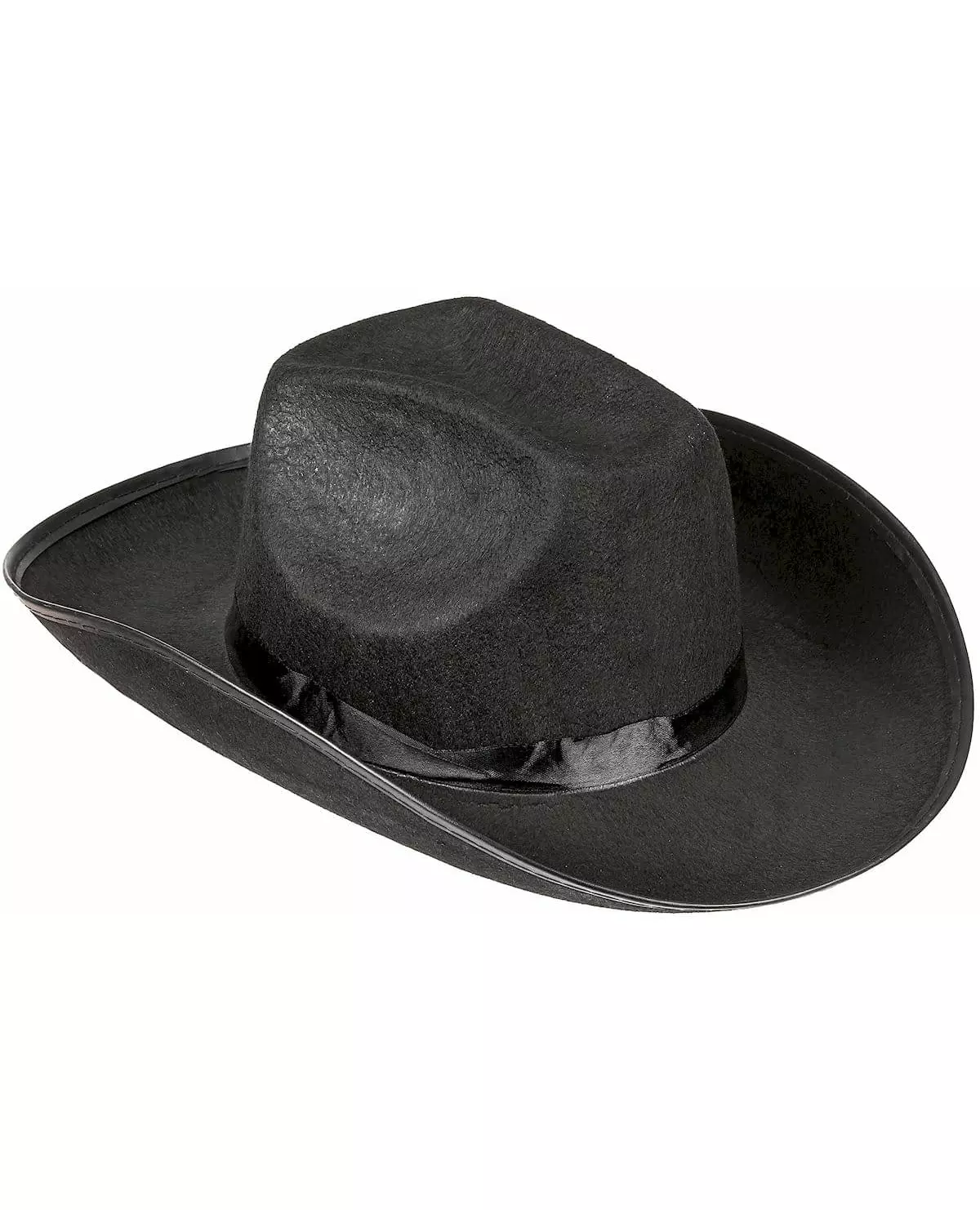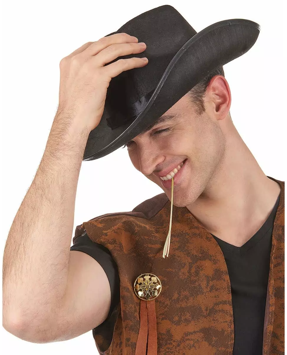 Ville vesten er din! Denne cowboyhatten er for voksne. Dekket av svart filt, gjør den ganske stive strukturen dette hodeplagget til et veldig realistisk tilbehør. Et lite svart satengpannebånd er plassert ved bunnen av hatten. Det vil passe for en hodeomkrets på rundt 60 cm. For å fullføre et cowboykostyme, vil dette tilbehøret garantert gjøre en inntrykk på en kostymefest eller et show. Inkludert tilbehør: Hattmateriale: Polyester
