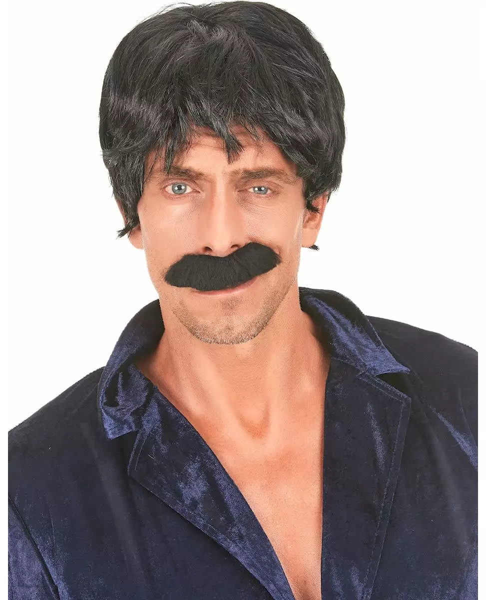 Volum! Denne svarte disco-sangerparykken er for menn. Den har et voluminøst snitt med vakre bølger. Denne parykken er det essensielle tilbehøret for å fullføre sangerkostymet ditt til temafester eller karneval. Inkludert tilbehør: Parykk