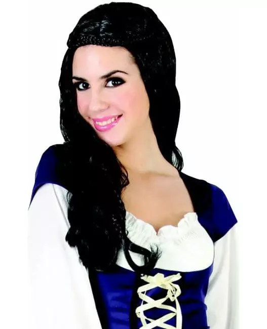 Få et middelaldersk utseende med denne svarte parykken. Denne pene middelalderparykken, som holdes på plass av en strikk, har langt svart hår flettet foran og løst bak. For kvinner vil denne middelalderprinsesseparykken være ideell for å fullføre kostymet ditt under et karneval eller temafester med venner. Inkludert tilbehør: Parykk. Materiale: Polyester. Stell: Håndvask.
