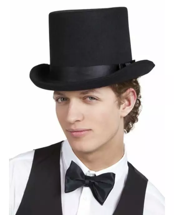 Veldig elegant! Denne elegante flosshatten er svart. Den har en hodeomkrets på omtrent 59 cm og måler omtrent 15 cm i høyden. Denne pene, svarte flosshatten er dekorert med et svart satengbånd med en fin sløyfe for en elegant og dandy stil. Til slutt gjør en strikk under hatten at den tilpasser seg alle hodeformer og forhindrer at den faller ned i ansiktet. Denne hatten vil være ideell for en elegant temafest eller til karneval! Inkludert tilbehør: Hatt Materiale: Polyester Stell: Håndvask Mål: Hodeomkrets: omtrent 59 cm Høyde: omtrent 15 cm