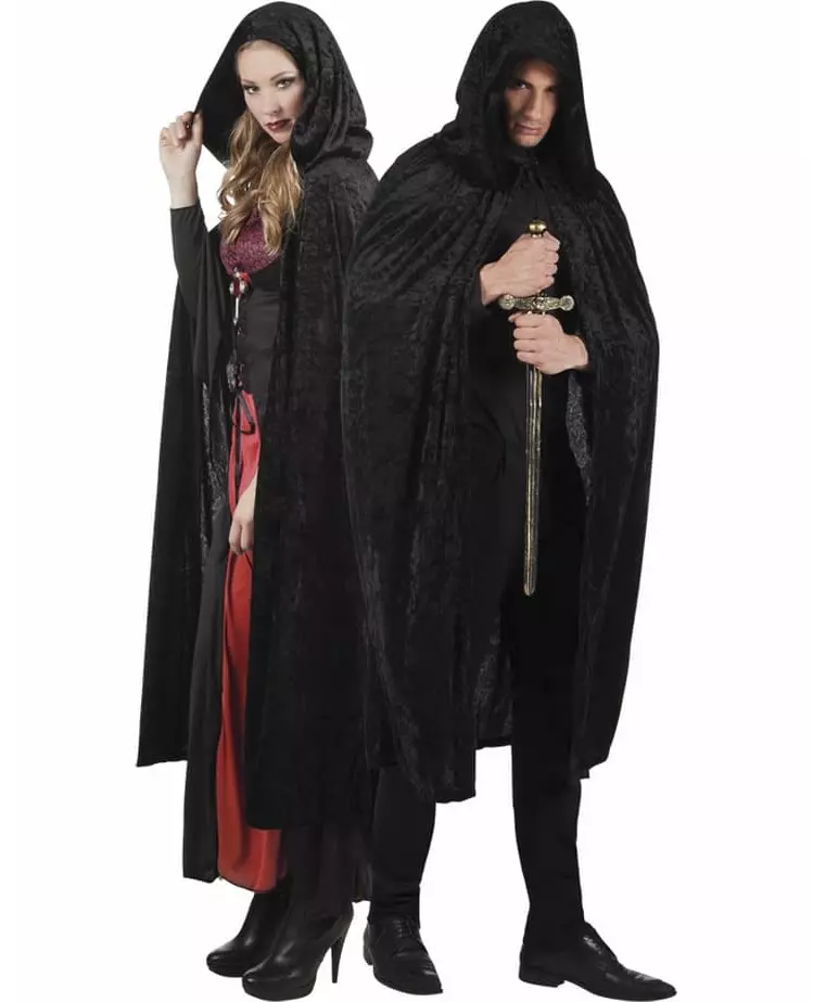 Stor kappe! Denne svarte kappen i fløyelsutseende måler 170 cm. Med en stor hette vil den garantert gi deg et mystisk utseende! På en utkledningsfest eller et show vil denne vakre kappen være et uunnværlig tilbehør til et middelalder- eller vampyrkostyme, for eksempel! Inkludert tilbehør: Hettekappe Materiale: 100 % polyester Vedlikehold: Håndvask
