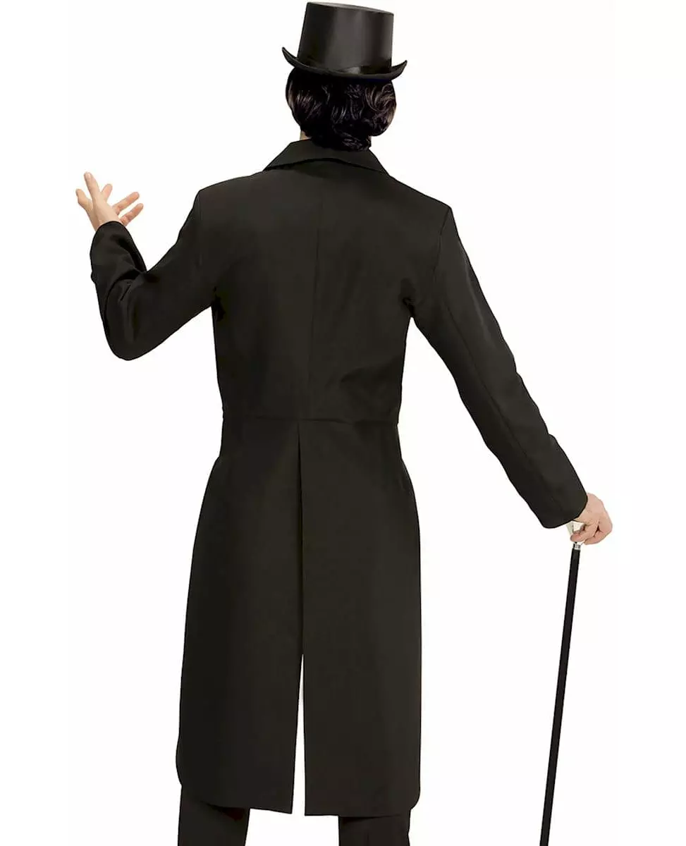 Stilig gentleman! Denne frakkjakken er designet for menn (hatt, bukser, skjorte, sløyfe, sko, hatt og stokk er ikke inkludert). Jakken er veldig stilig og er helt svart med en knapp foran som gjør at den kan lukkes. Frakksnittet er vel ansett: veldig lang bak og mye kortere foran, noe som gir et snev av eleganse til ethvert antrekk! Vær elegant under alle omstendigheter, selv til utkledningsfesten din, og spill gentleman-dandyen med alle de pene jentene! © Copyright Widmann SRL. Inkludert tilbehør: Frakkjakke Materiale: 100 % polyester Pleie: Håndvask Målinformasjon: For en størrelse M måler jakken omtrent 116 cm i lengden