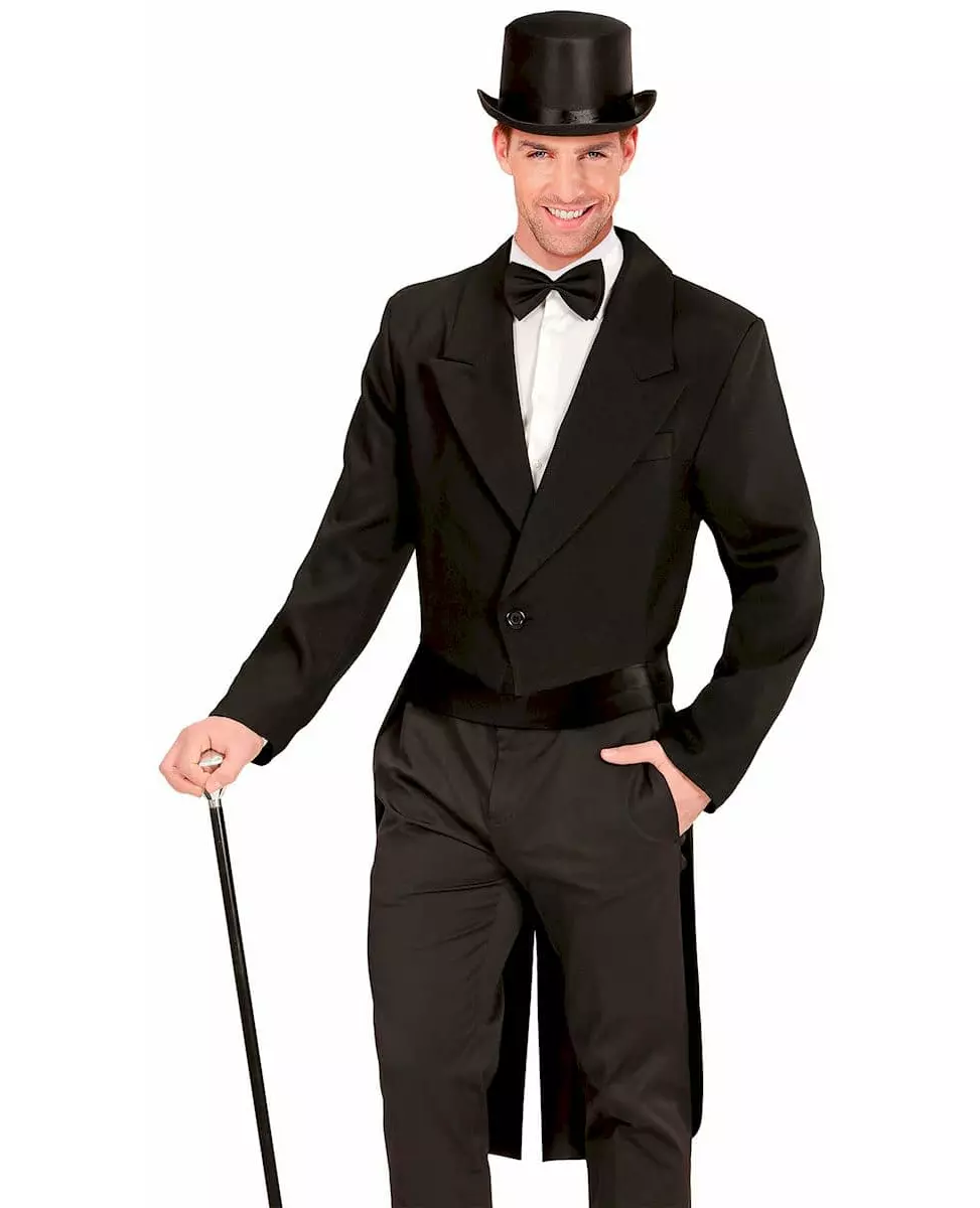 Stilig gentleman! Denne frakkjakken er designet for menn (hatt, bukser, skjorte, sløyfe, sko, hatt og stokk er ikke inkludert). Jakken er veldig stilig og er helt svart med en knapp foran som gjør at den kan lukkes. Frakksnittet er vel ansett: veldig lang bak og mye kortere foran, noe som gir et snev av eleganse til ethvert antrekk! Vær elegant under alle omstendigheter, selv til utkledningsfesten din, og spill gentleman-dandyen med alle de pene jentene! © Copyright Widmann SRL. Inkludert tilbehør: Frakkjakke Materiale: 100 % polyester Pleie: Håndvask Målinformasjon: For en størrelse M måler jakken omtrent 116 cm i lengden