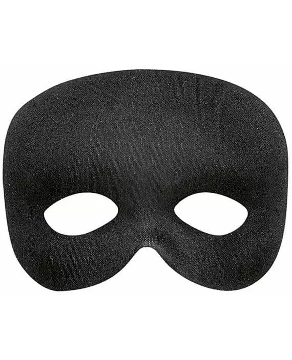 Skjul ansiktet ditt med denne elegante, svarte masken. Denne halvmasken for voksne er svart. Den har en strikk som gjør den enkel å feste på ansiktet. Dette tilbehøret er ideelt for å fullføre kostymet ditt på en kostymefest. «Copyright Widmann SRL». «Copyright Widmann SRL.