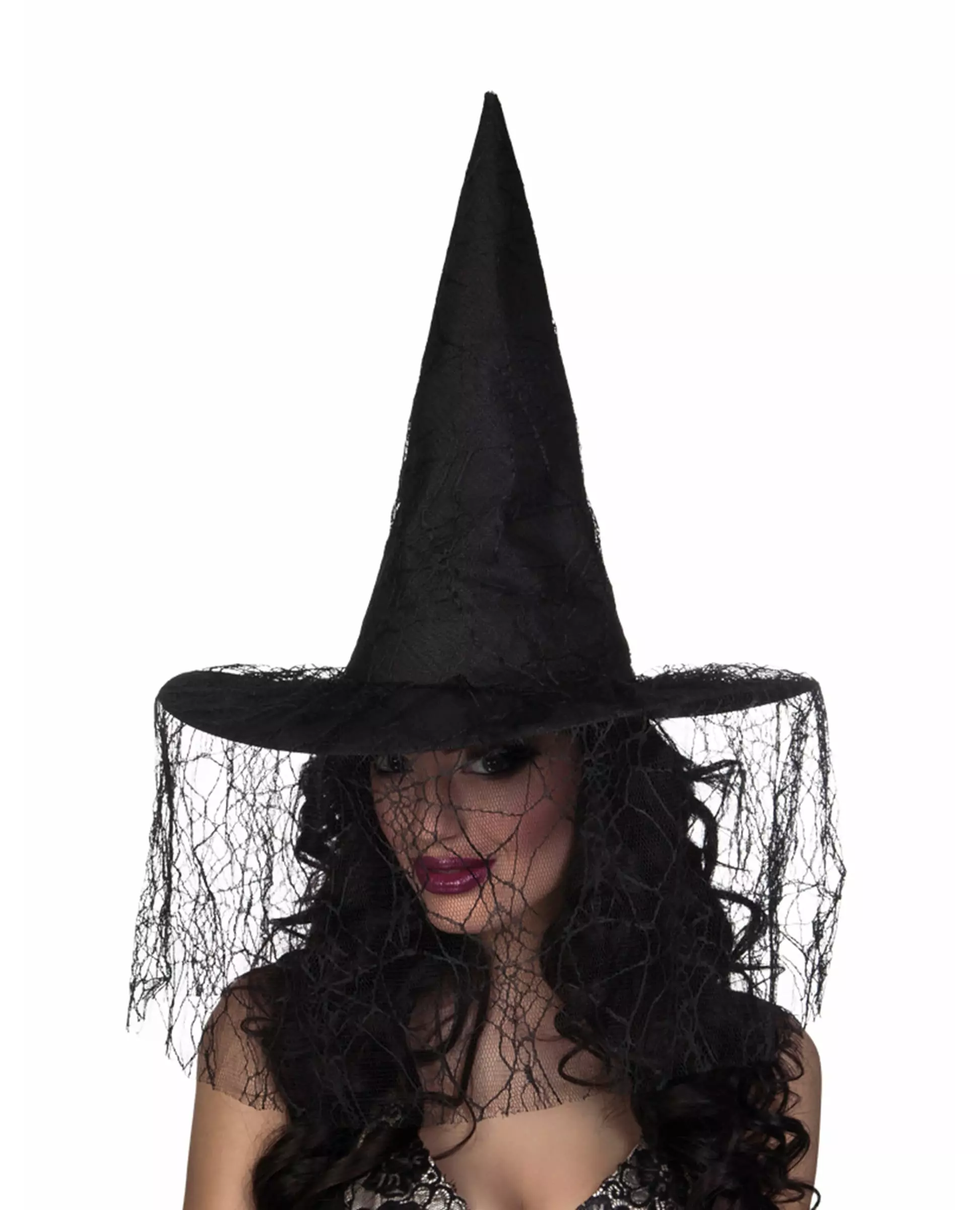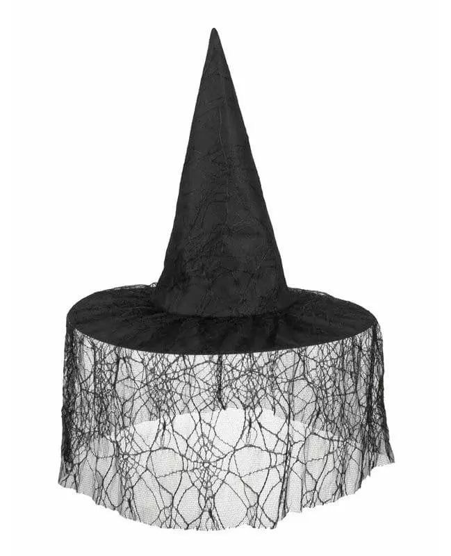 Svart heksehatt med edderkoppslør til dame, Halloween