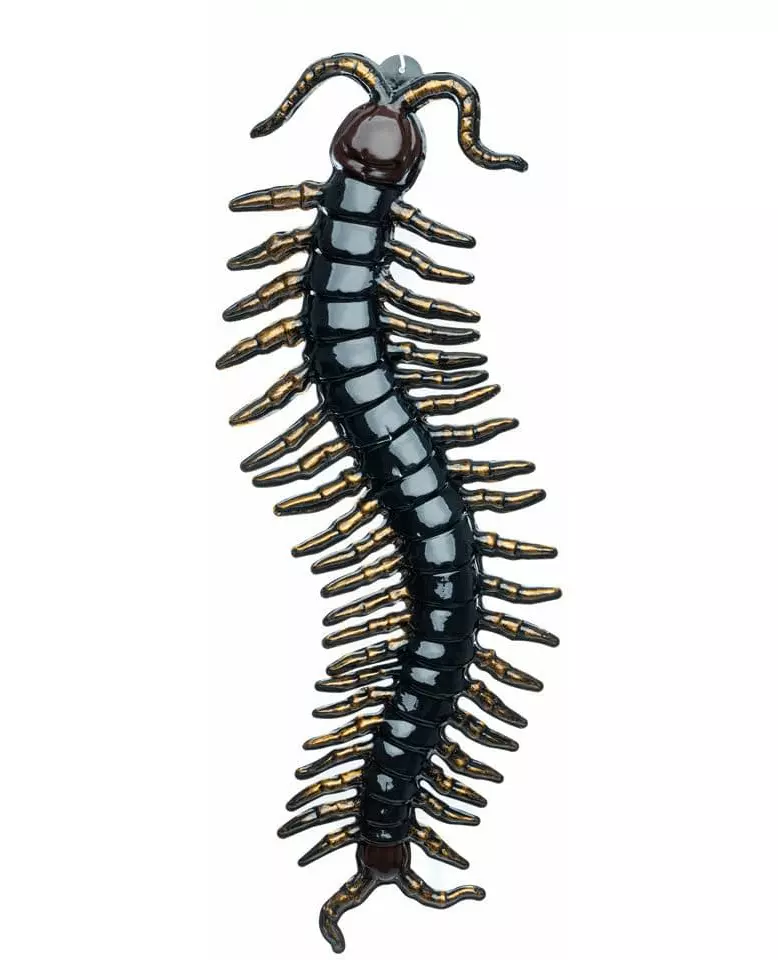 Legg til et snev av realistisk skrekk til Halloween-dekorasjonen din! Denne hengende svarte tusenbeinet måler omtrent 90 cm i lengden. Med slående realisme har den små, leddede segmenter og ben som gir inntrykk av at den kan bevege seg når som helst. Du kan enkelt henge den ovenfra ved hjelp av en diskré wire integrert i hodet. Denne store tusenbeinet vil være perfekt for å dekorere interiøret ditt og skremme gjestene dine på Halloween-kvelden...! Inkludert tilbehør: Svart tusenbeinet til oppheng Materiale: Plast Stell: Håndvask