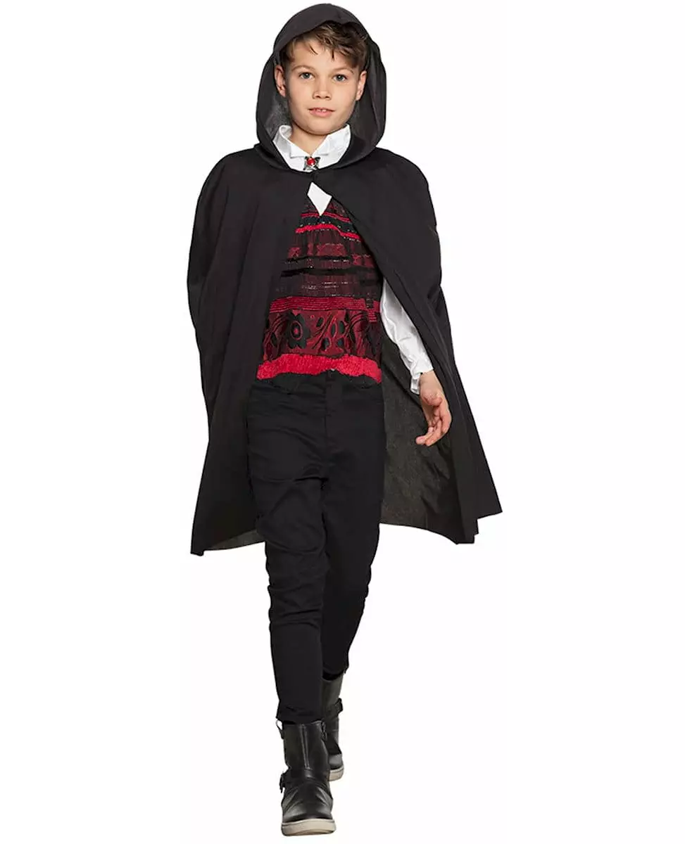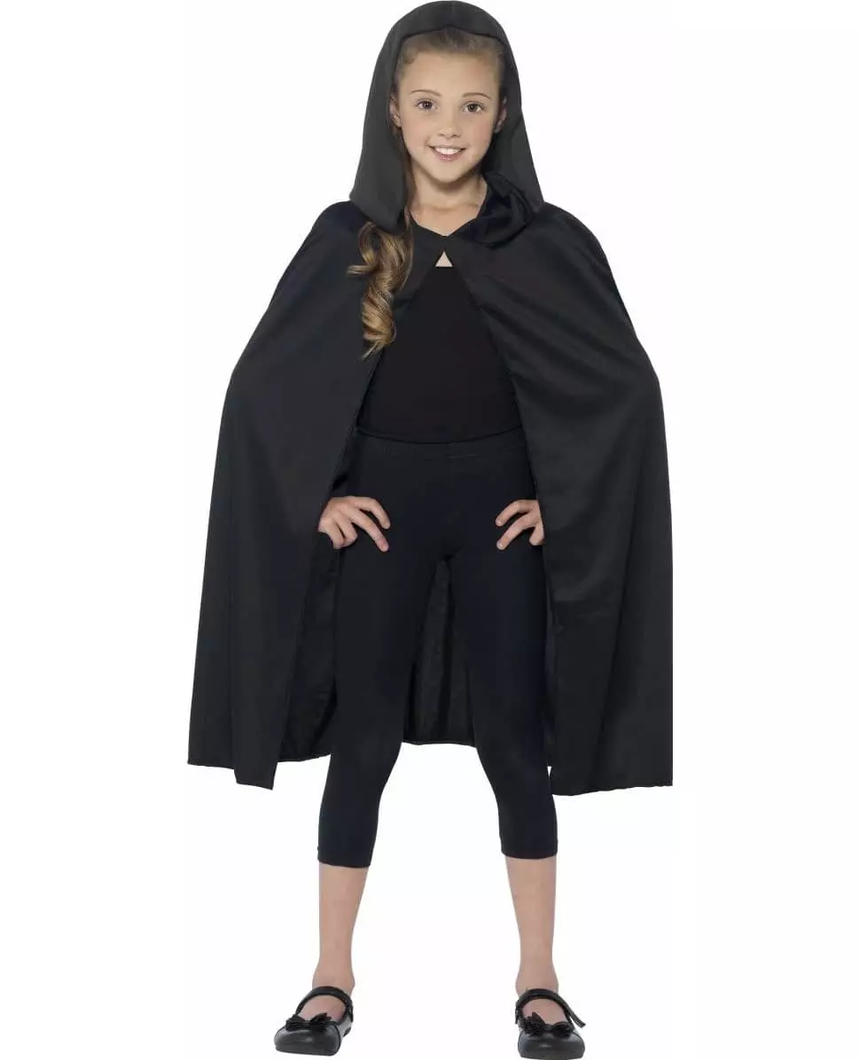 Gjør antrekket ditt enda bedre med denne kappen! Denne kappen er for barn. Den er svart og har hette. Den måler omtrent 76 cm og lukkes med borrelås. Dette tilbehøret vil være perfekt til Halloween eller et kostymearrangement. Inkludert tilbehør: Kappe Materiale: 100 % polyester Vedlikehold: Håndvask