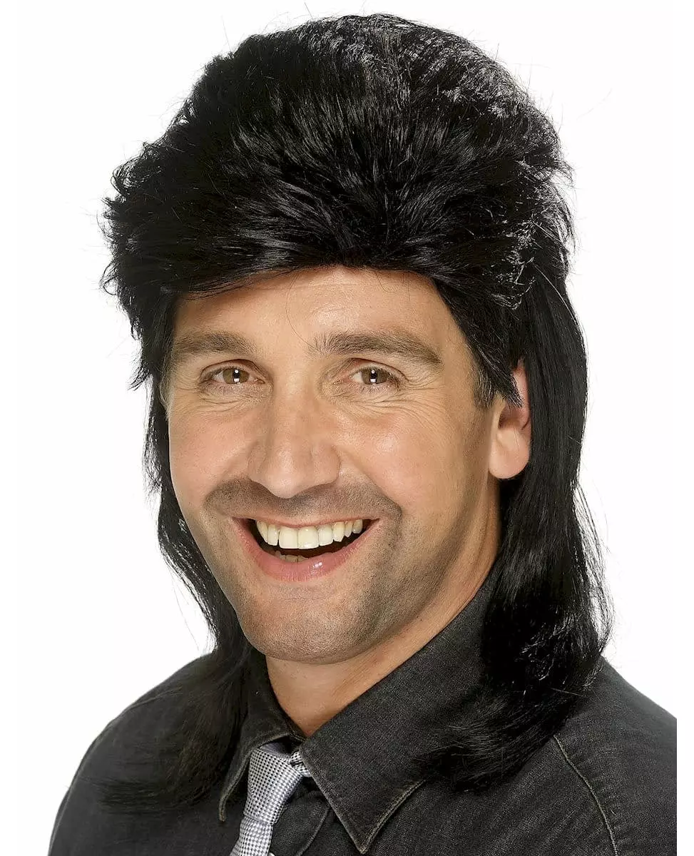 Langt hår! Denne herreparykken er svart. Håret er kort på toppen og langt på sidene. Den vil være ideell for å fullføre retrokostymene dine på temafester. Inkludert tilbehør: Parykkmateriale: Syntetisk 100 % polyetylen 100 % polyetylen