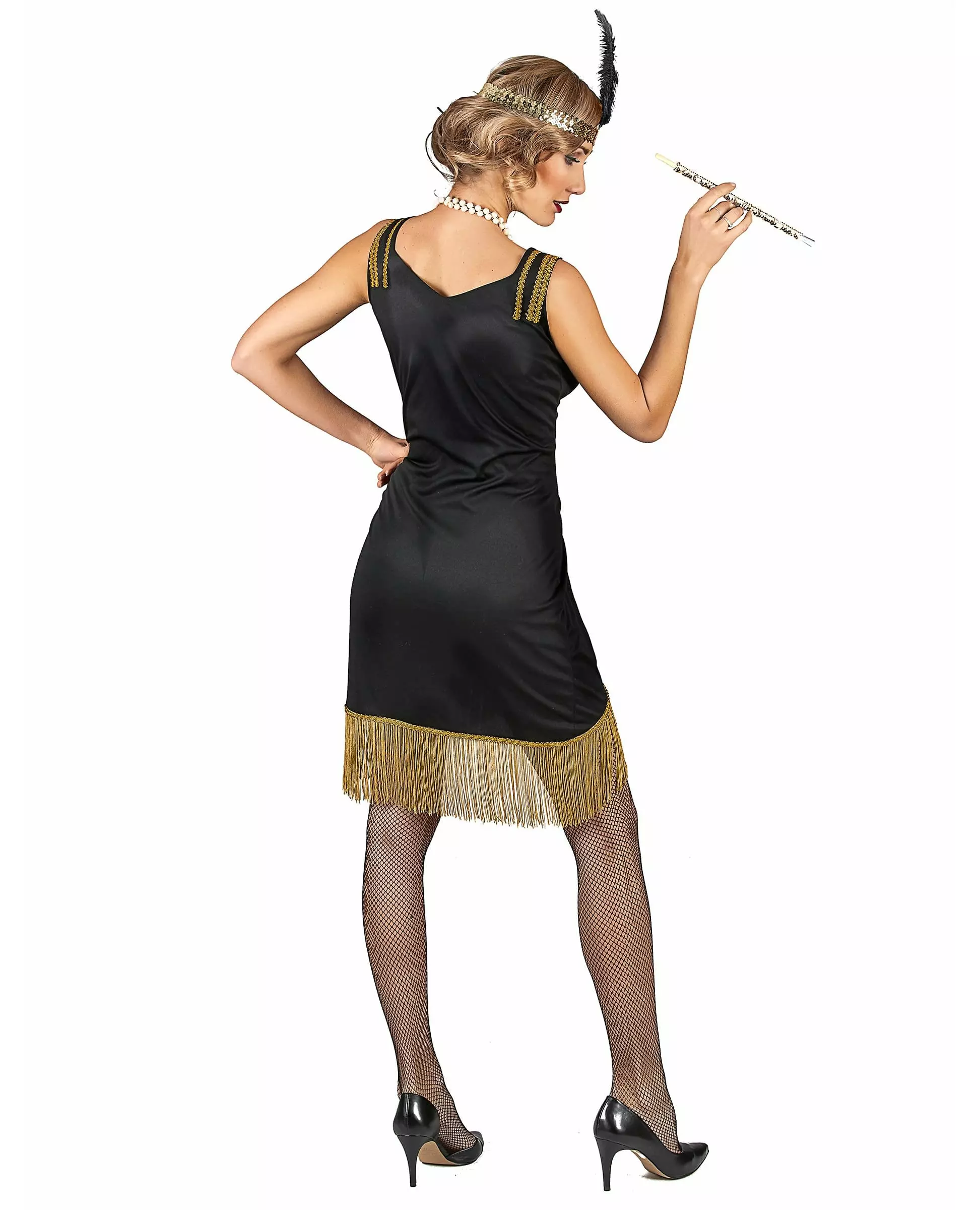 Svart og gullfarget Charleston-kostyme med frynser til kvinner