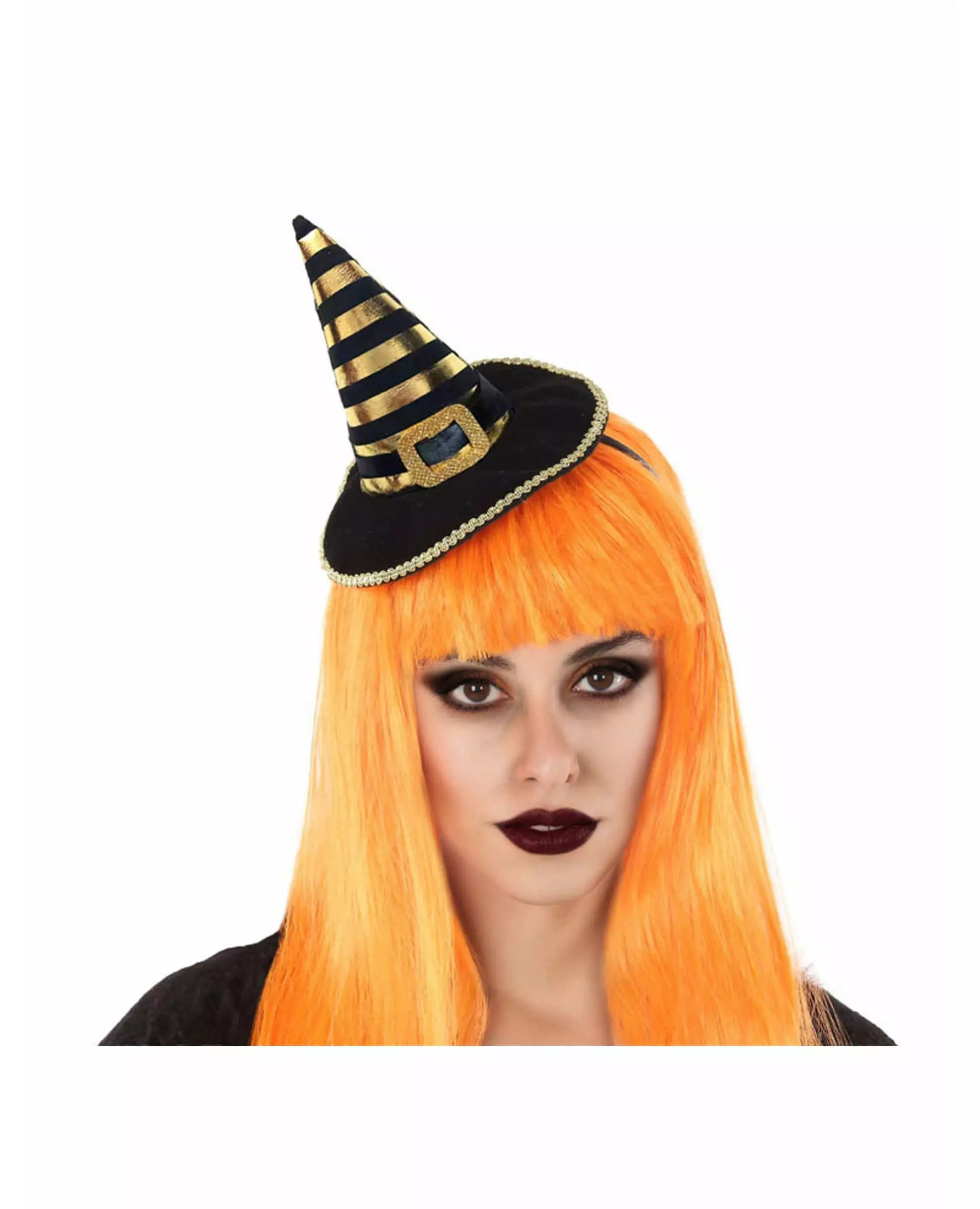 Svart og gullstripete mini-heksehattpannebånd til voksne