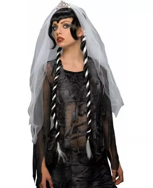 Svart og hvit gotisk brudeparykk DE