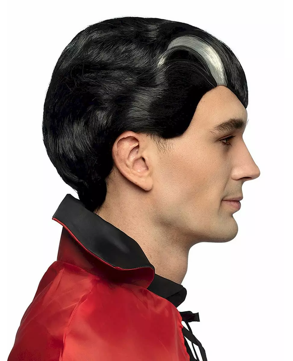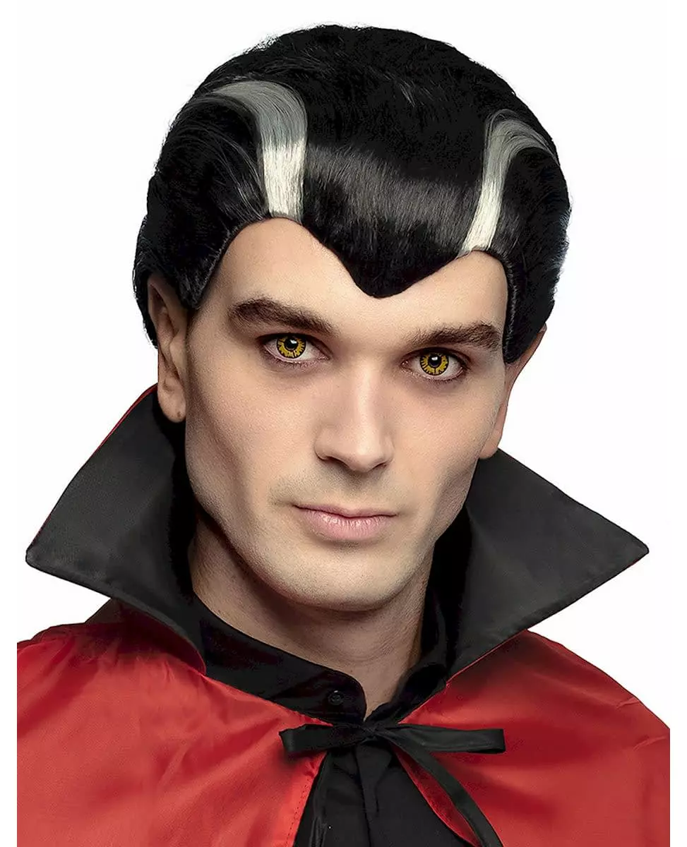 Gjør vampyrkostymet ditt komplett! Denne vakre vampyrparykken for menn er svart og hvit. Laget av syntetisk hår, består den av to striper med hvitt hår som vil gjenspeile de lange vampyrhjørnetennene (tenner ikke inkludert). Det er det ideelle tilbehøret for å fullføre vampyrkostymet ditt på Halloween-kvelden!. Inkludert tilbehør: Parykk Materiale: Syntetisk 100 % polyester 100 % polyester