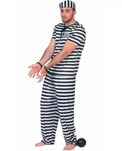 Med serienummer! Dette fangekostymet for menn består av en topp, bukser og et hodeplagg med svarte og hvite striper. På forsiden av t-skjorten kan du se et falskt svart nummer på en hvit bakgrunn. For å spille rømlingen til et kostymefest, vil dette enkle kostymet være perfekt!. Inkludert tilbehør: T-skjorte Bukser Hodeplagg Materiale: 100 % polyester Pleie: Håndvask