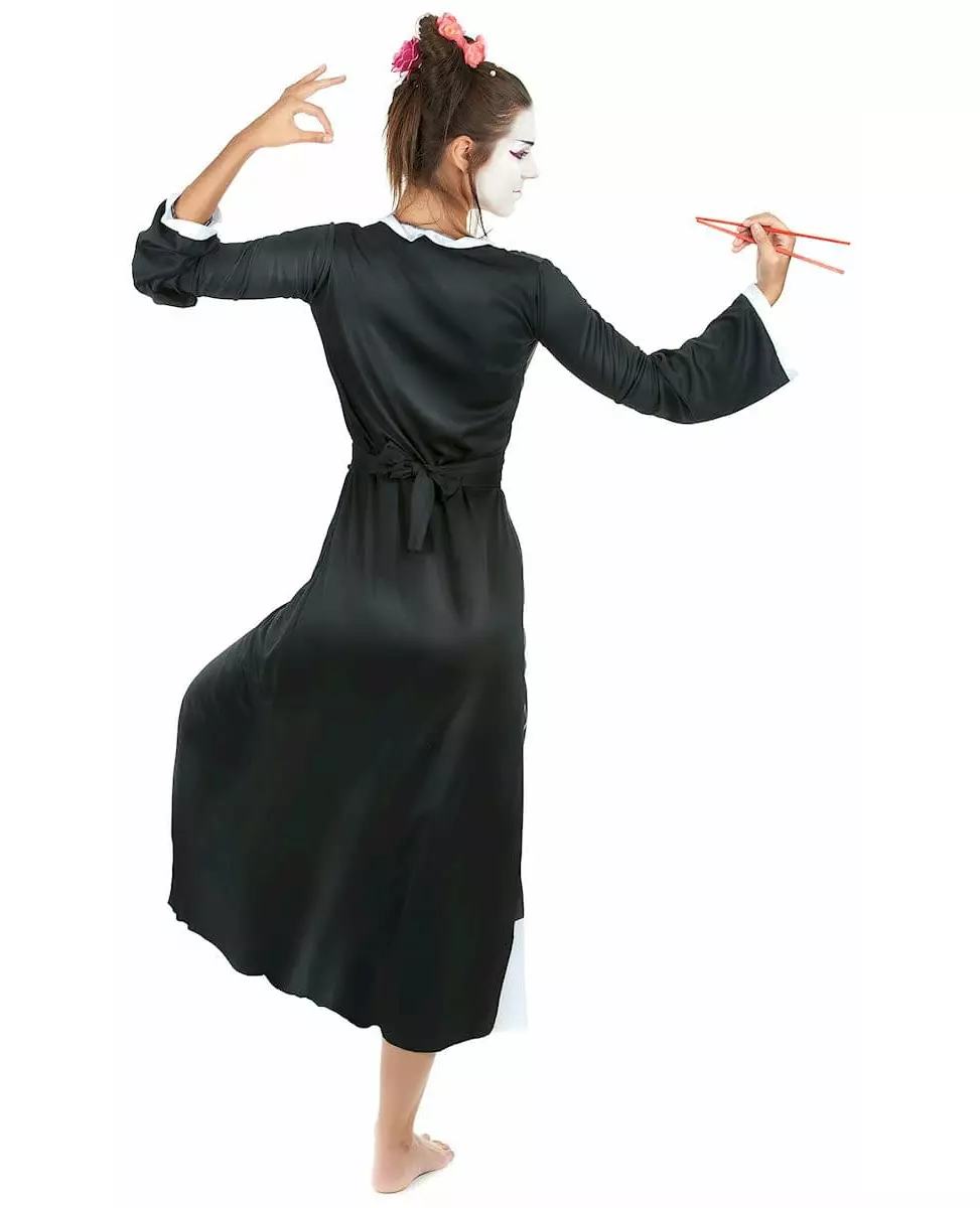 Svart og rødt sett! Dette geisha-kostymet for kvinner består av en lang, myk kimono, veldig behagelig å ha på seg takket være det fine stoffet. Beltet er enkelt justerbart til størrelsen din (parykk og flip-flops er ikke inkludert). Dette kostymet er perfekt for å spille geisha til karneval eller under utkledningsfester.   «Copyright Widmann SRL».  »Copyright Widmann SRL. Inkludert tilbehør: Kimono-belte Materiale: 100 % polyester Stell: For hånd Målinformasjon: For størrelse S er kimonoen omtrent 131 cm lang og ermene er omtrent 61 cm lange. For størrelse L er kimonoen omtrent 143 cm lang og ermene er omtrent 65 cm lange.