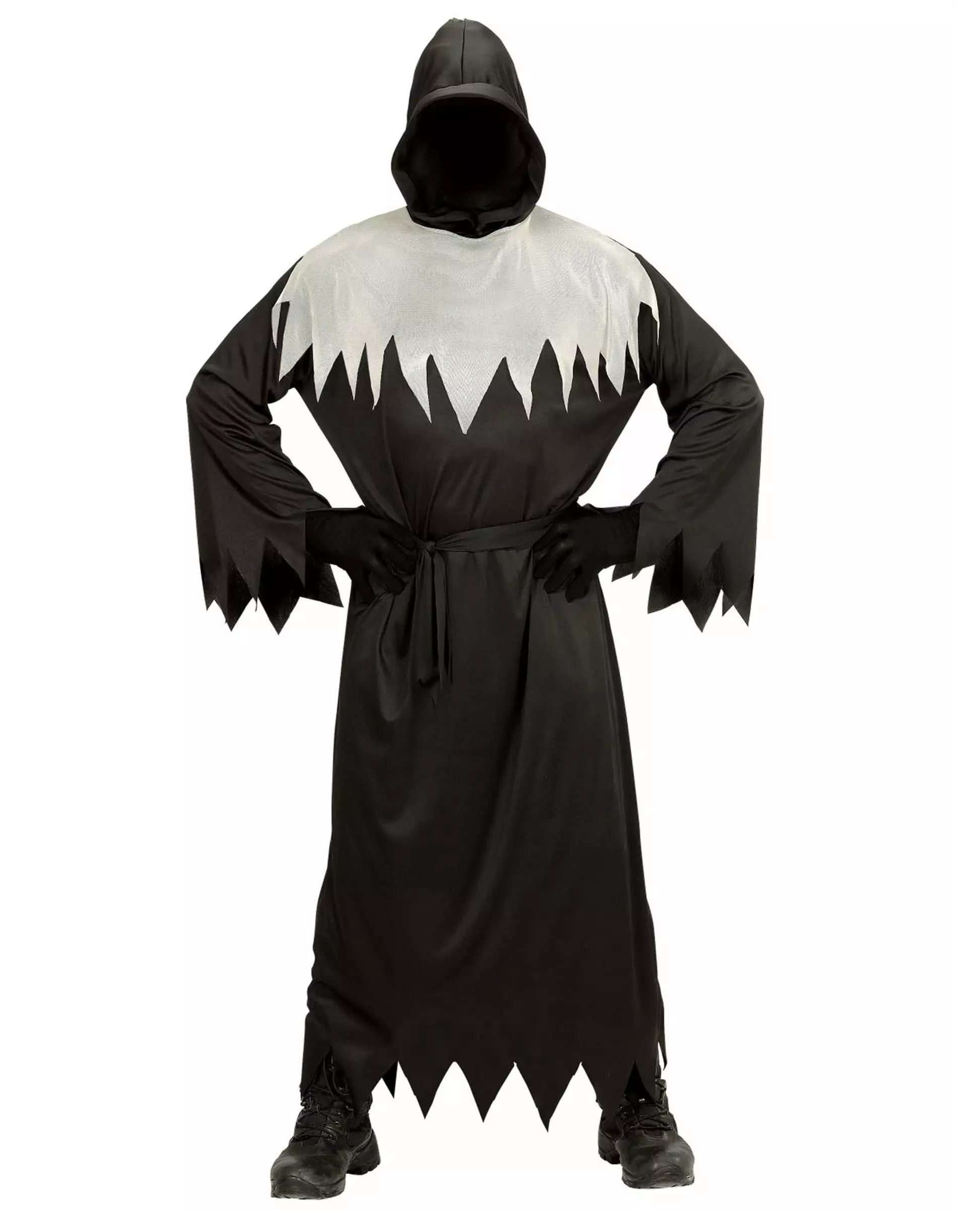 Det er umulig å feire Halloween uten denne svart-hvite grim reaper-kostymet! Dette svart-hvite reaper-kostymet er for voksne, og det består av en tunika med hette, en maske som skjuler ansiktet og et belte. Denne tunikaen er svart, kuttet i spisser, med lange utsvingte ermer. Et hvitt stoff dekker skuldrene, også kuttet i spisser. Hetten er svart med en svart maske som dekker ansiktet, noe som gir et skremmende aspekt til dette kostymet. Beltet er av svart stoff som knytes i livet for å justere det. Dette svart-hvite grim reaper-kostymet vil være perfekt til utkledningsfesten din. Inkludert tilbehør: Tunika med hette og maske Belte Materiale: 100 % polyester Pleie: Håndvask
