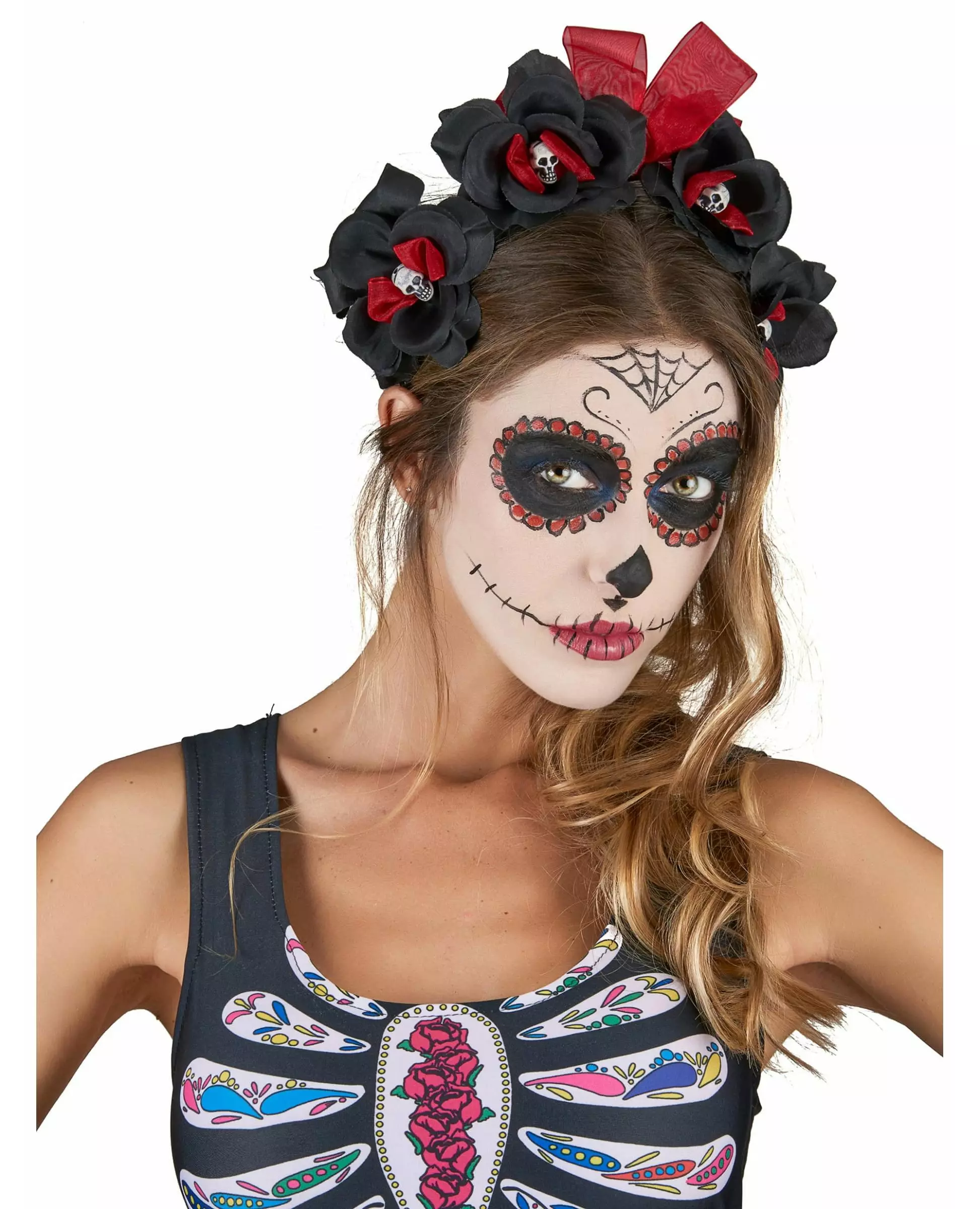 Svart og rødt blomsterpannebånd for voksne til de dødes dag