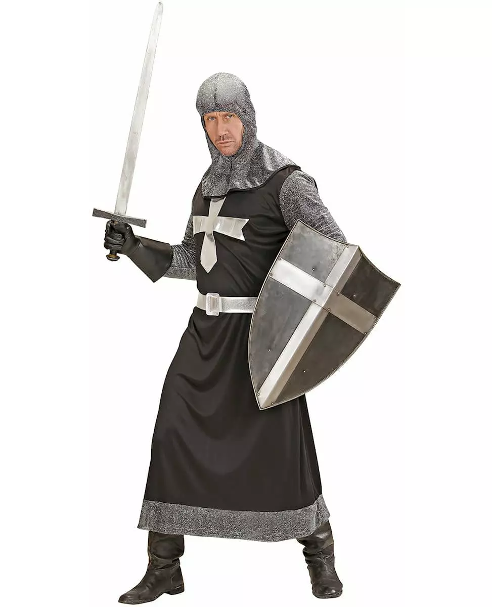 Ringbrynjeeffekt! Dette svarte ridderkostymet for menn består av en lang frakk, et belte og et hodeplagg. Frakken er svart og sølv for ringbrynjeeffekten med et kors i midten. Beltet er sølvfarget, og hodeplagget minner også om ringbrynjen til ekte riddere. (Sverd og skjold er ikke inkludert). Dette kostymet er perfekt for å legemliggjøre en ekte ridder til karneval eller under kostymefester. © Copyright Widmann SRL. Inkludert tilbehør: Frakk Belte Hodeplagg Materiale: 100 % polyester Stell: For hånd Målinformasjon: For størrelse S, frakk ca. 130 cm lang og ermer ca. 57 cm lange.
