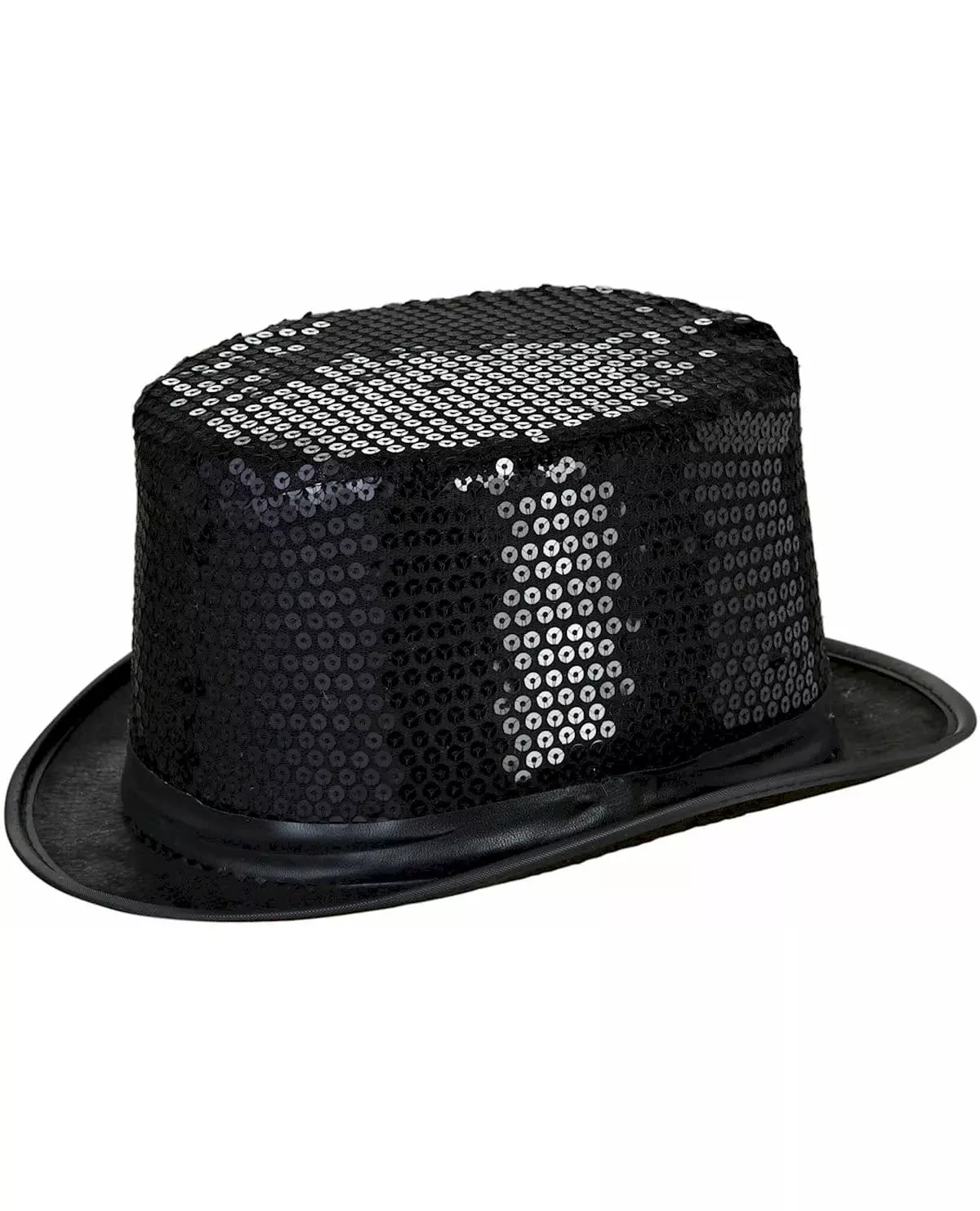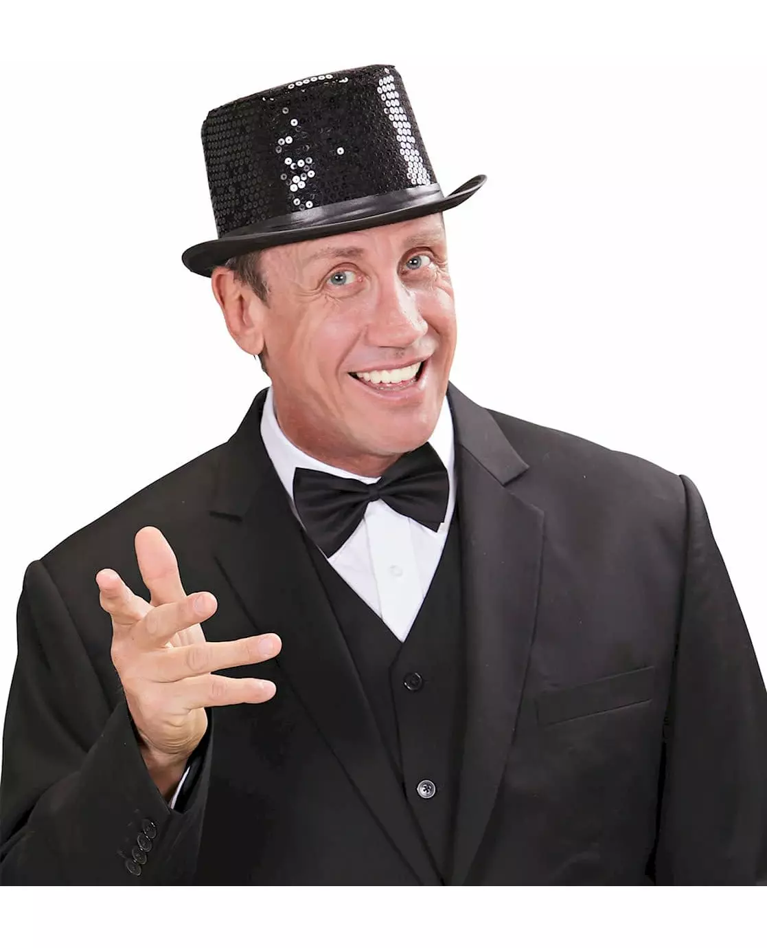 For å skinne til slutten av natten! Denne svarte flosshatten for voksne er stiv. Den er dekket med svarte paljetter og har et lærlignende bånd nederst. Den sitter på hodet og har ingen strikk. Den tilsvarer en hodeomkrets på omtrent 56 cm. Den måler omtrent 12 cm i høyden. Denne flosshatten av svært god kvalitet vil være det essensielle tilbehøret til en vellykket nyttårsfest, eller til en kveld med "strass og paljetter"! © Copyright Widmann SRL. Inkludert tilbehør: 1 hatt Materiale: 100 % polyester