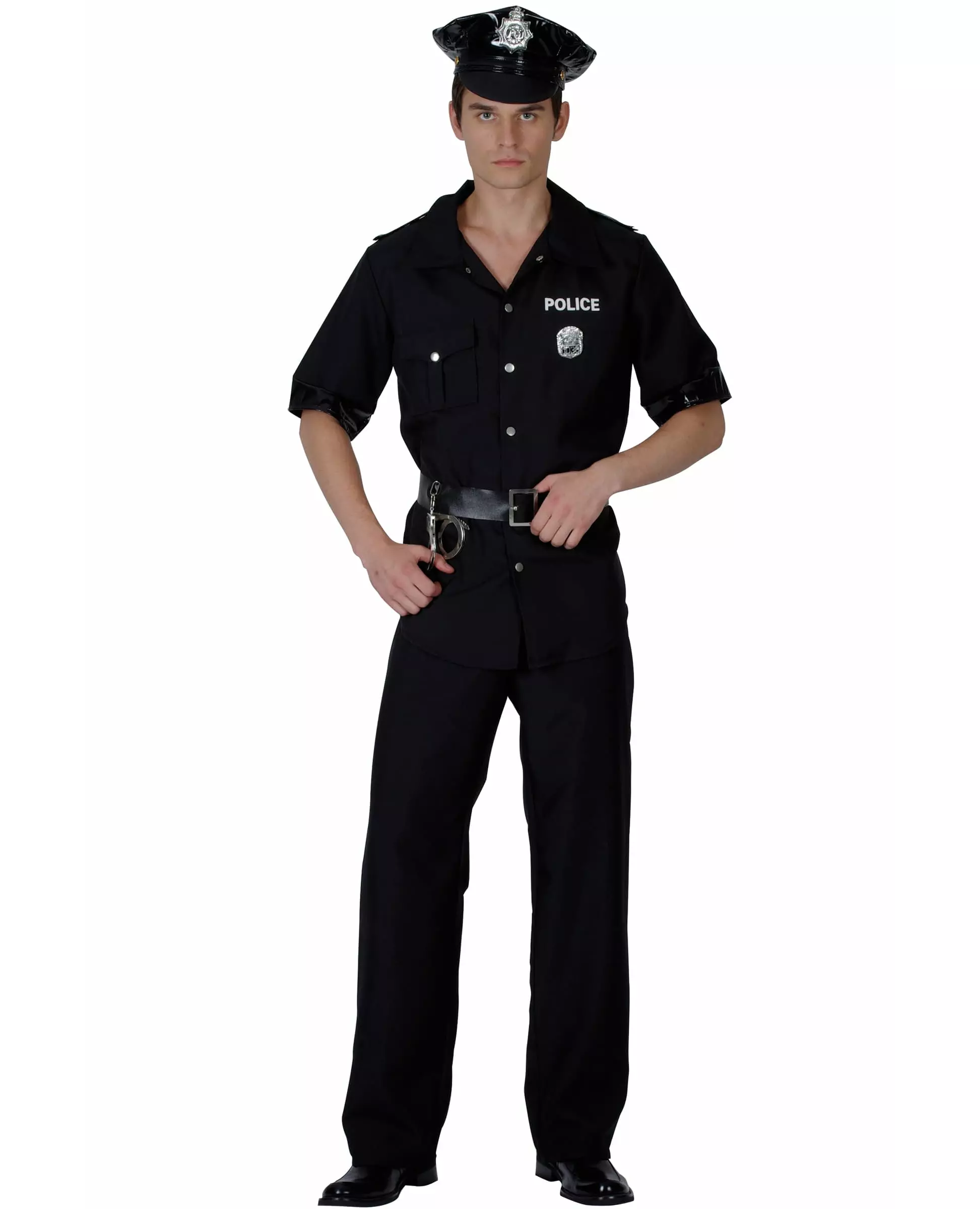 Realistisk! Dette politibetjentkostymet er for menn og inkluderer en jakke, bukse, belte og lue (håndjern, batonger, pistol og briller er ikke inkludert). Jakken er svart og laget av tykt stoff. Den lukkes med trykknapper. Skuldre og ermer er dekorert med imiterte vinylbiter, noe som bidrar til kostymets realisme. Buksene har en elastisk linning og er svarte. Beltet er svart og har en sølvspenne. Til slutt har luen et merke foran og passer til hodestørrelser rundt 58 cm. Dette svært realistiske kostymet vil gjøre deg til den perfekte ordensforsvareren til karnevalet. Inkludert tilbehør: Lue, jakke, belte, bukser Materiale: 100 % polyester Vedlikehold: Håndvask