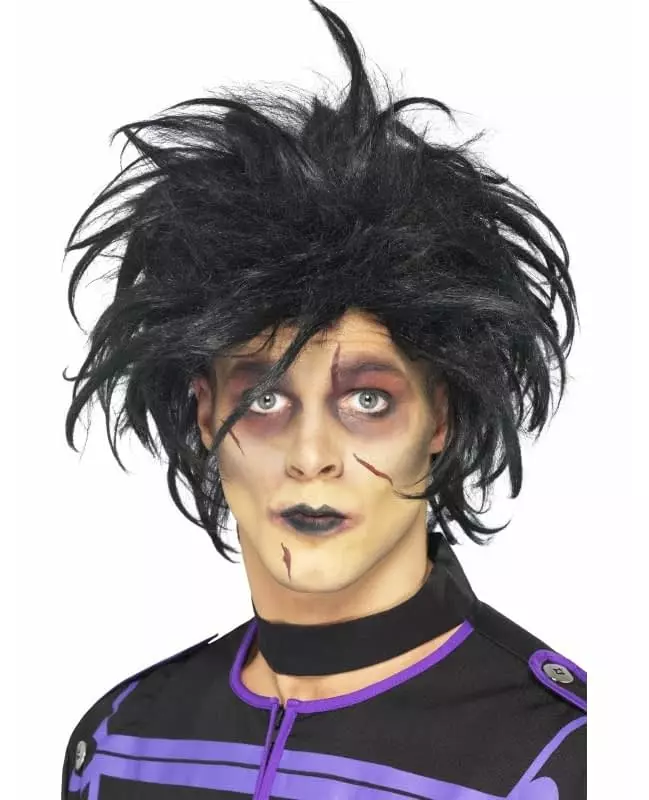 Legg til et snev av makaber til kostymet ditt. Denne svarte psykopatparykken for menn har kort, rufsete svart hår. Festet til et elastisk nett, vil den enkelt tilpasse seg hodeomkretsen din. Dette tilbehøret vil være ideelt for å fullføre Halloween-kostymet ditt. Inkludert tilbehør: Parykk Materiale: Syntetisk