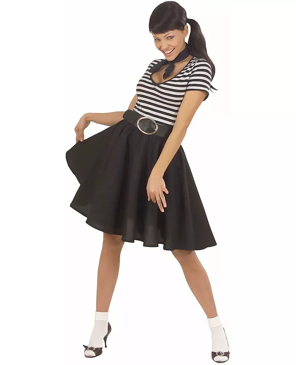 Gi skjørtet ditt en vill rock 'n' roll-vri! Dette mellomlange, svarte skjørtet har et utsvingt snitt (skjerf, t-skjorte, belte, sokker og sko er ikke inkludert). Det har en elastisk linning som gir en god passform, og svart tyll fyller ut undersiden for en bedre effekt. Dette plagget er det manglende plagget i et 50-tallsinspirert kostyme som tar deg tilbake til rock 'n' roll-fester med venner! Du blir en hit på dansegulvet! Copyright Widmann SRL. Inkludert tilbehør: Skjørt Materiale: 100 % polyester