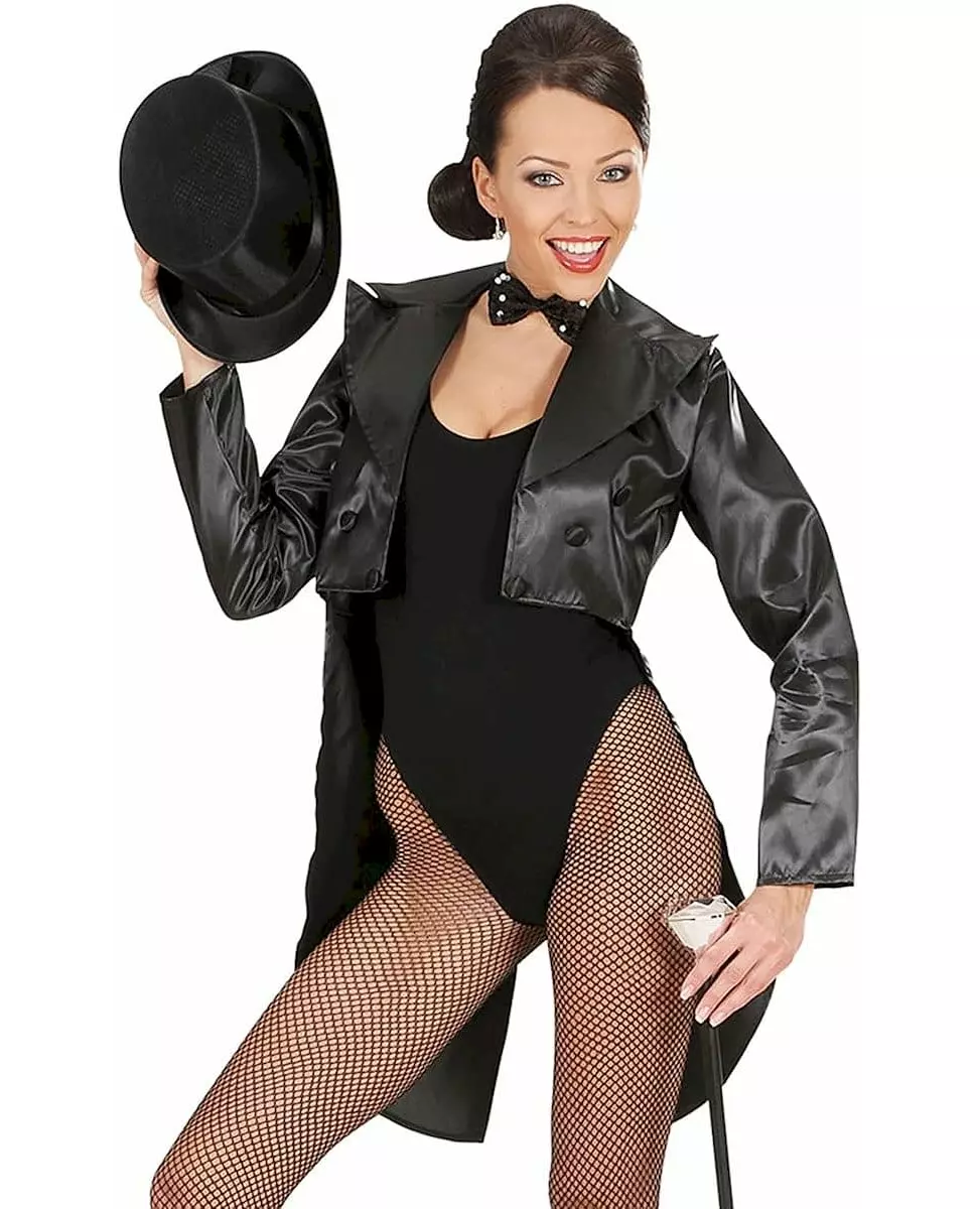 For tryllekunstnere og dansere! Denne fantastiske frakken for kvinner er svart (jumpsuit, hatt, stokk, strømper og sløyfe er ikke inkludert). Den er spesielt laget for scenedansere og er designet helt i skinnende sateng. Denne frakken kan brukes under et show (for eksempel trylling) eller på karnevalsfesten. Copyright Widmann SRL. Inkludert tilbehør: 1 frakk Materiale: 100 % polyester Vedlikehold: Håndvaskbar