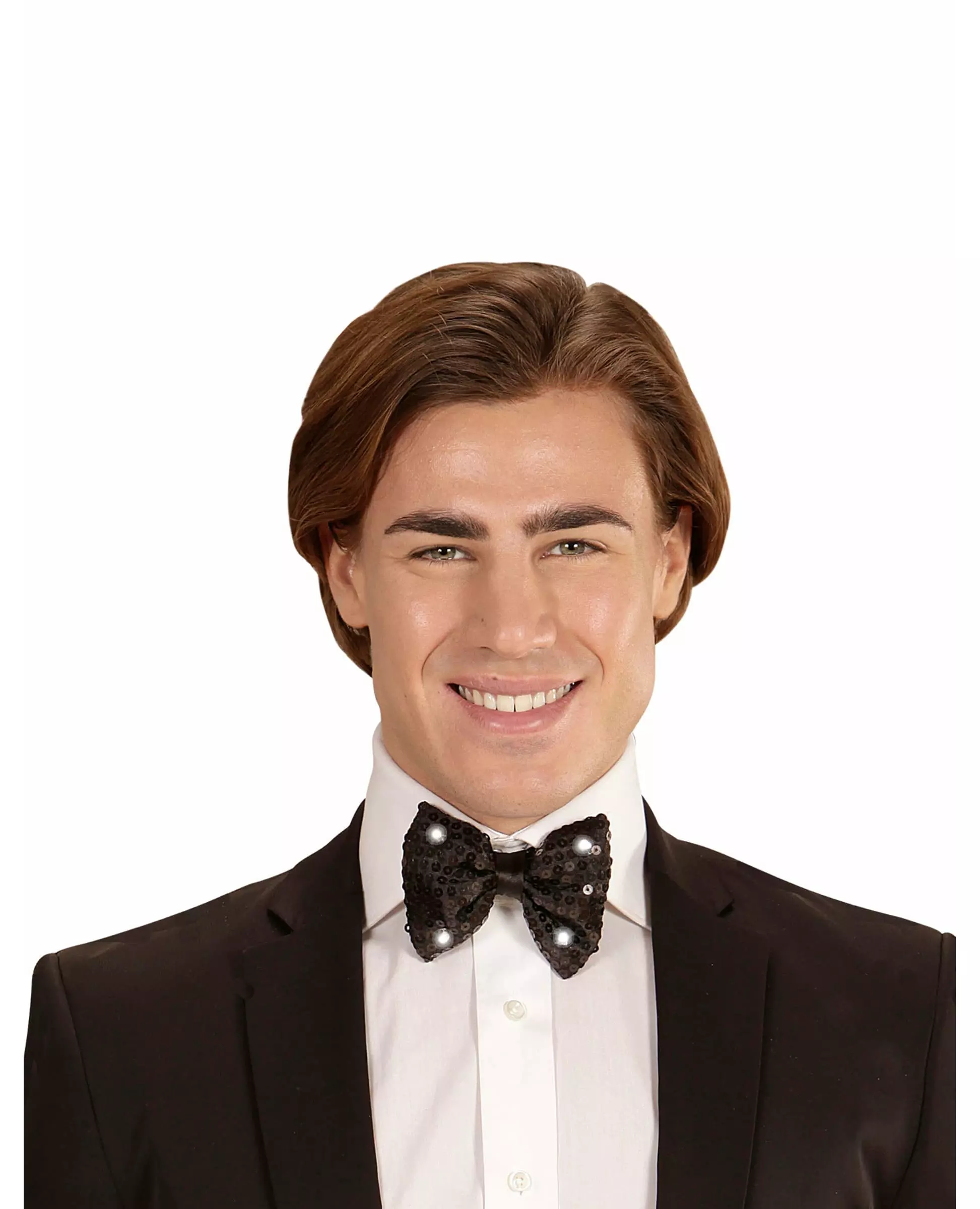 Få kostymet ditt til å glitre! Denne blinkende LED-sløyfen for voksne er svart (kun sløyfen er inkludert). Den er fullstendig dekket av paljetter for en glitrende effekt. Den har fire blinkende LED-lys. Trykk på "PRØV MEG"-knappen for å aktivere lyseffekten! Sløyfen festes rundt halsen med en klipslukking. Fullfør kveldskostymet ditt med denne elegante og iøynefallende sløyfen! «Copyright Widmann SRL» «Copyright Widmann SRL. Inkludert tilbehør: 1 sløyfe Materiale: 100 % polyester Vedlikehold: Håndvask