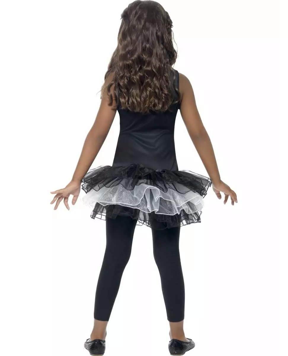 Bli et ekte lite skjelett til Halloween. Dette skjelettkostymet for jenter består av en kjole (strømpebukser og sko er ikke inkludert). Den ermeløse kjolen er svart. Et hvitt skjelett er trykt på forsiden av kjolen. Nederdelen av kjolen danner en tutu. Den er laget av forskjellige svarte og hvite rysjer som gir volum til helheten. Dette kostymet vil være perfekt for å bli et søtt lite skjelett til Halloween. Inkludert tilbehør: Kjole. Materiale: 100 % polyester. Pleie: Håndvask.