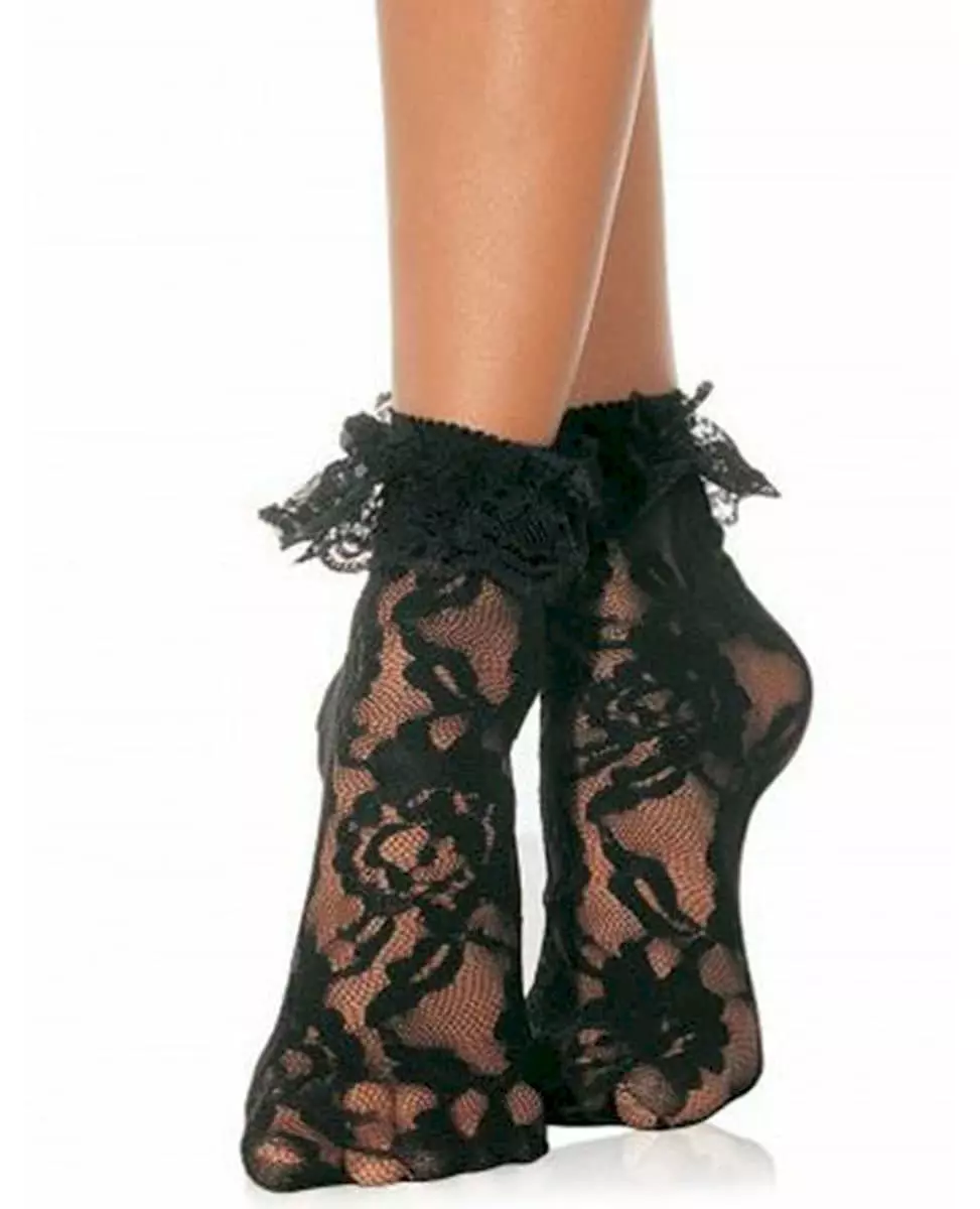 Svarte ankelsokker i blonder til dame