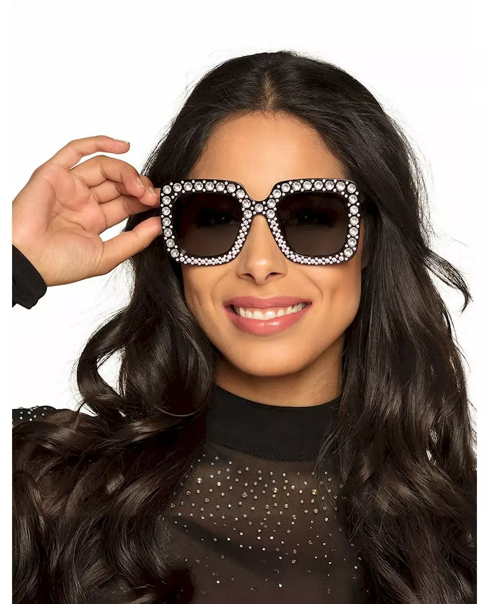 Et utseende som skinner i rampelyset! Disse svarte bling-bling-brillene for voksne er det perfekte tilbehøret for å skinne på fest. De har en overdimensjonert svart innfatning, fullstendig dekorert med glitrende strass for en garantert glamorøs og iøynefallende effekt. Ideelle for en discofest, et kjendiskostyme eller et ekstravagant utseende, disse brillene gir et morsomt og glitrende preg til antrekket ditt. Inkludert tilbehør: 1 par briller