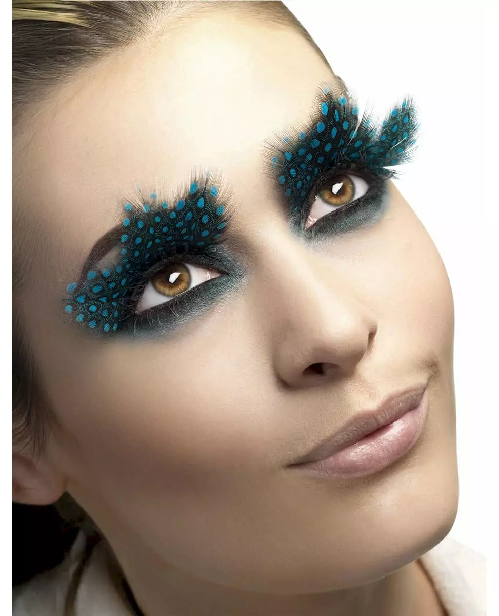 Svarte fjærfalske øyevipper med blå prikker for voksne