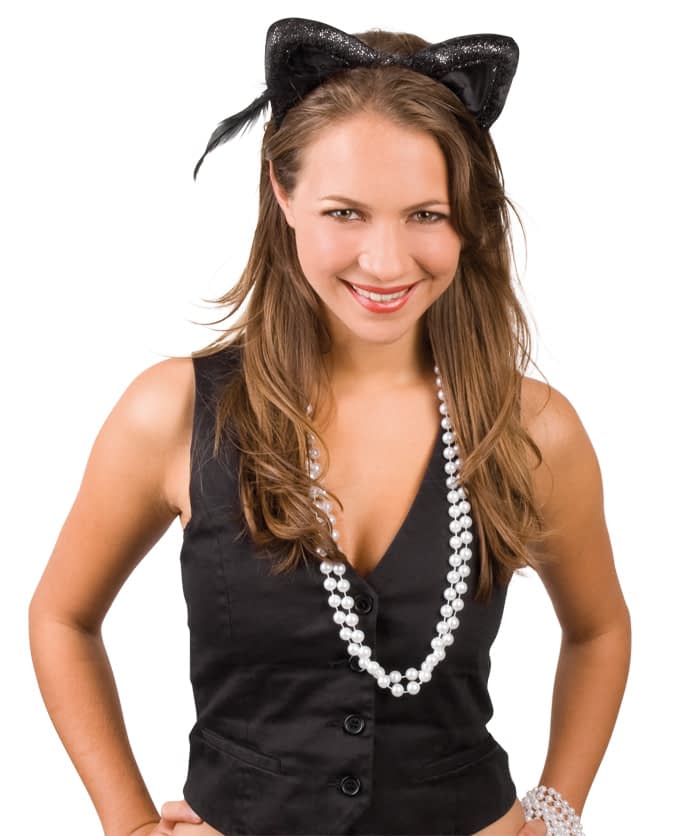Med glitter! Pannebånd toppet med to katteører. Stoffet er svart dekket med paljetter. Det vil være ideelt for en sexy forkledning til et kostymefest eller til Valentinsdagen. Inkludert tilbehør: Pannebånd Materiale: Polyester
