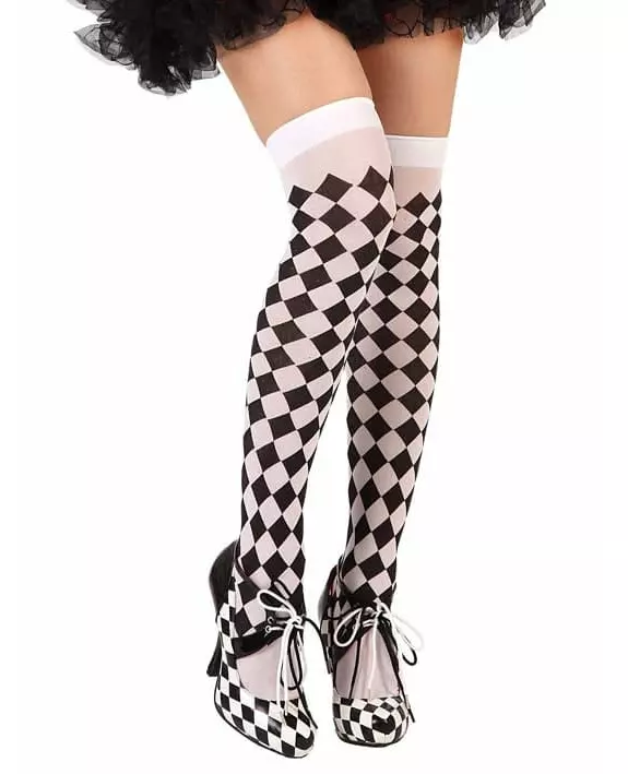 Komfortabelt og elastisk materiale! Disse svart-hvite rutete strømpene for kvinner er komfortable og elastiske for å passe beina til så mange kvinner som mulig. De er essensielle for å fullføre kostymet ditt på ulike kostymefester. Inkludert tilbehør: Strømper Materiale: 100 % polyester Vaskeanvisning: Vask ved 30°