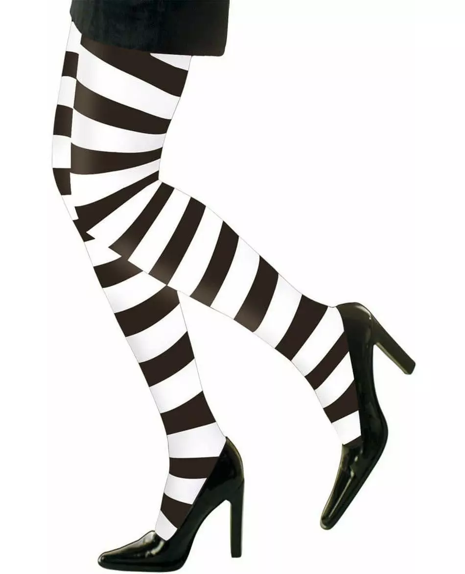 Kle deg opp til tå! Disse strømpebuksene for voksne er svarte og hvite striper. De har en tykkelse på 70 denier. Disse strømpebuksene vil være perfekte for å fullføre et hekse- eller fangekostyme til karneval eller Halloween. «Copyright Widmann SRL». «Copyright Widmann SRL. Inkludert tilbehør: Strømpebukser Materiale: 98 % nylon, 2 % spandex