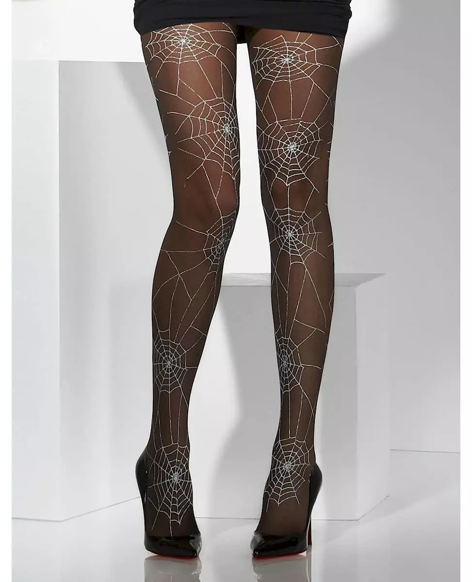 For hekser! Denne strømpebuksen er svart. Den er trykt med hvite spindelvev. Disse spindelvevstrømpebuksene vil være perfekte for å fullføre et heksekostyme på Halloween-kvelden. Inkludert tilbehør: 1 par strømpebukser Materiale: 100 % nylon Stell: Håndvask