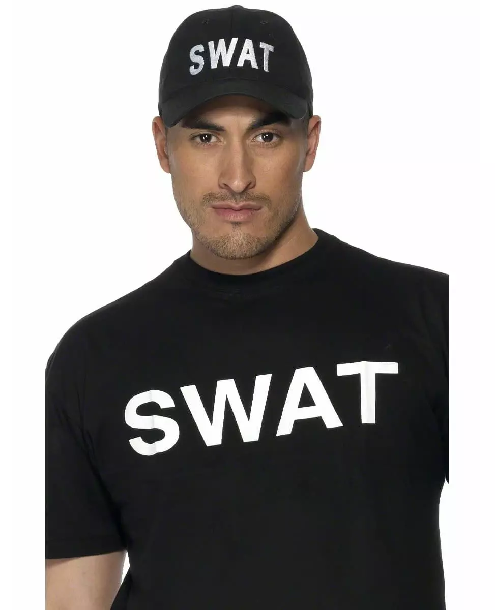 Realistisk! Denne SWAT-capsen for voksne er svart og har ordet «SWAT» på forsiden. Dette tilbehøret vil være ideelt for å fullføre politikostymet ditt på utkledningsfester eller temafester med elitepolitiet! Inkludert tilbehør: Caps Materiale: 100 % polyester Stell: Håndvask