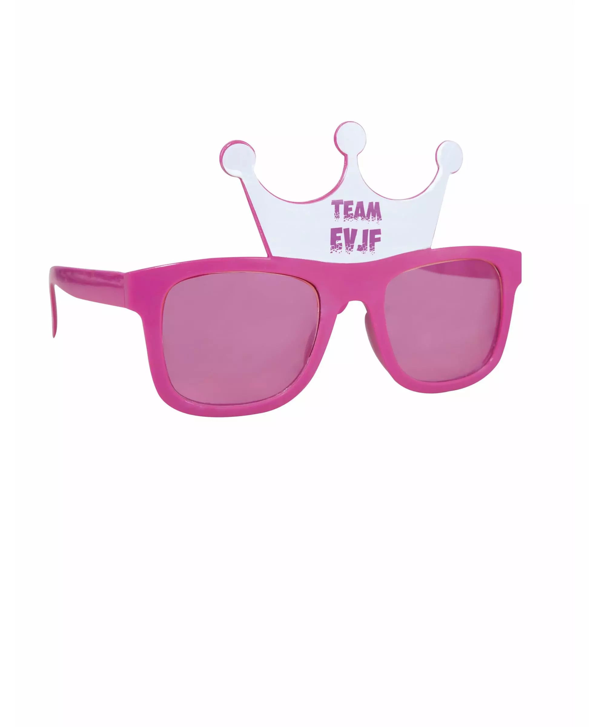 Bli en del av brudens team! Disse Team EVJF-brillene er for kvinner. De er laget av plast, og innfatningen og glassene er rosa. Brillene har en hvit krone med påskriften «team EVJF» i rosa bokstaver. Bli med brudens team på et utdrikningslag med disse Team EVJF-kronebrillene! Inkludert tilbehør: Briller