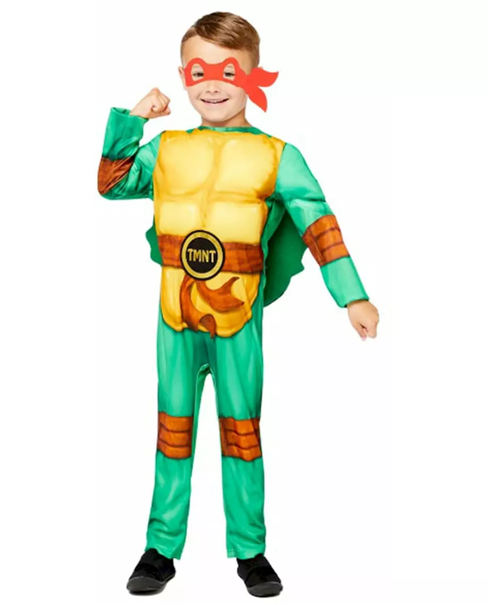Teenage Mutant Ninja Turtles er i aksjon! Dette Teenage Mutant Ninja Turtle™-kostymet er for barn og består av en jumpsuit og fire masker. Jumpsuiten er offisielt lisensiert av Teenage Mutant Ninja Turtle™, og representerer de berømte skjellkledde vigilantene fra tegnefilmen. Den har et polstret skall på ryggen. Det falske trykte beltet i midjen har inskripsjonen «TMNT». Kostymet er komplett med fire masker i blått, rødt, lilla og oransje som representer de fire Teenage Mutant Ninja Turtles™. Ta på deg Teenage Mutant Ninja Turtles™-kostymet til karneval! Materiale 100 % polyester Stell og vask Håndvask Tilbehør inkludert - Jumpsuit - Maske Sikkerhetsadvarsel! Ikke egnet for barn under 3 år. Inneholder små deler, kvelningsfare.