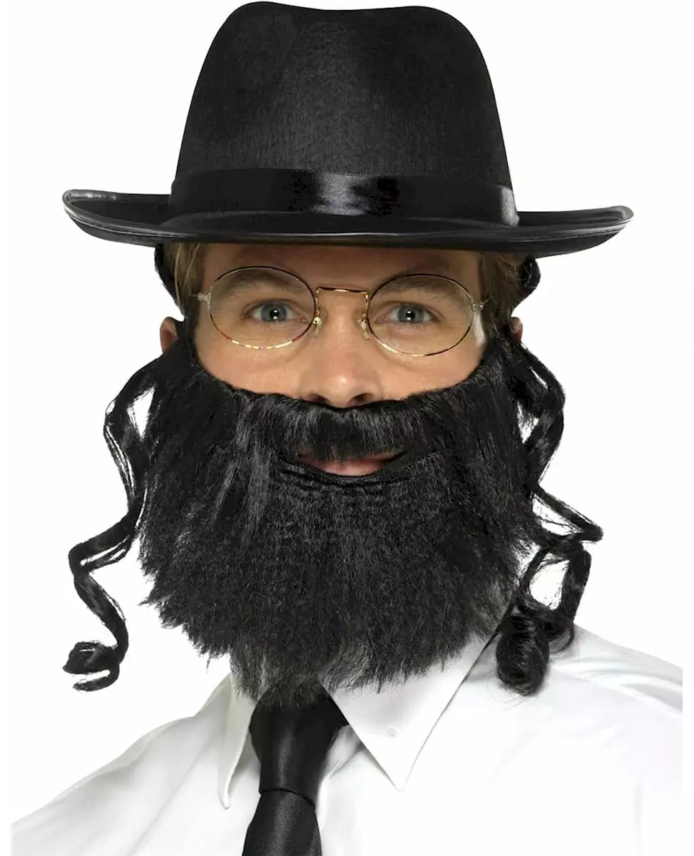Rabbi som om det var ekte! Dette rabbi-settet inneholder en hatt, briller og skjegg. Den svarte hatten er stiv og dekorert med et svart bånd. Svarte, krøllete hårlokker er festet på innsiden av hatten for å imitere et typisk rabbi-hodeplagg. Brillene er ovale og har linser. Innfatningen er gull. Det svarte skjegget bæres med en strikk som går bak hodet. Den dekker hele den nedre delen av ansiktet og fungerer som bart og skjegg. Dette svært komplette settet med rabbi-tilbehør lar deg fullføre karnevalkostymet ditt! Inkludert tilbehør: Hatt, briller, skjegg