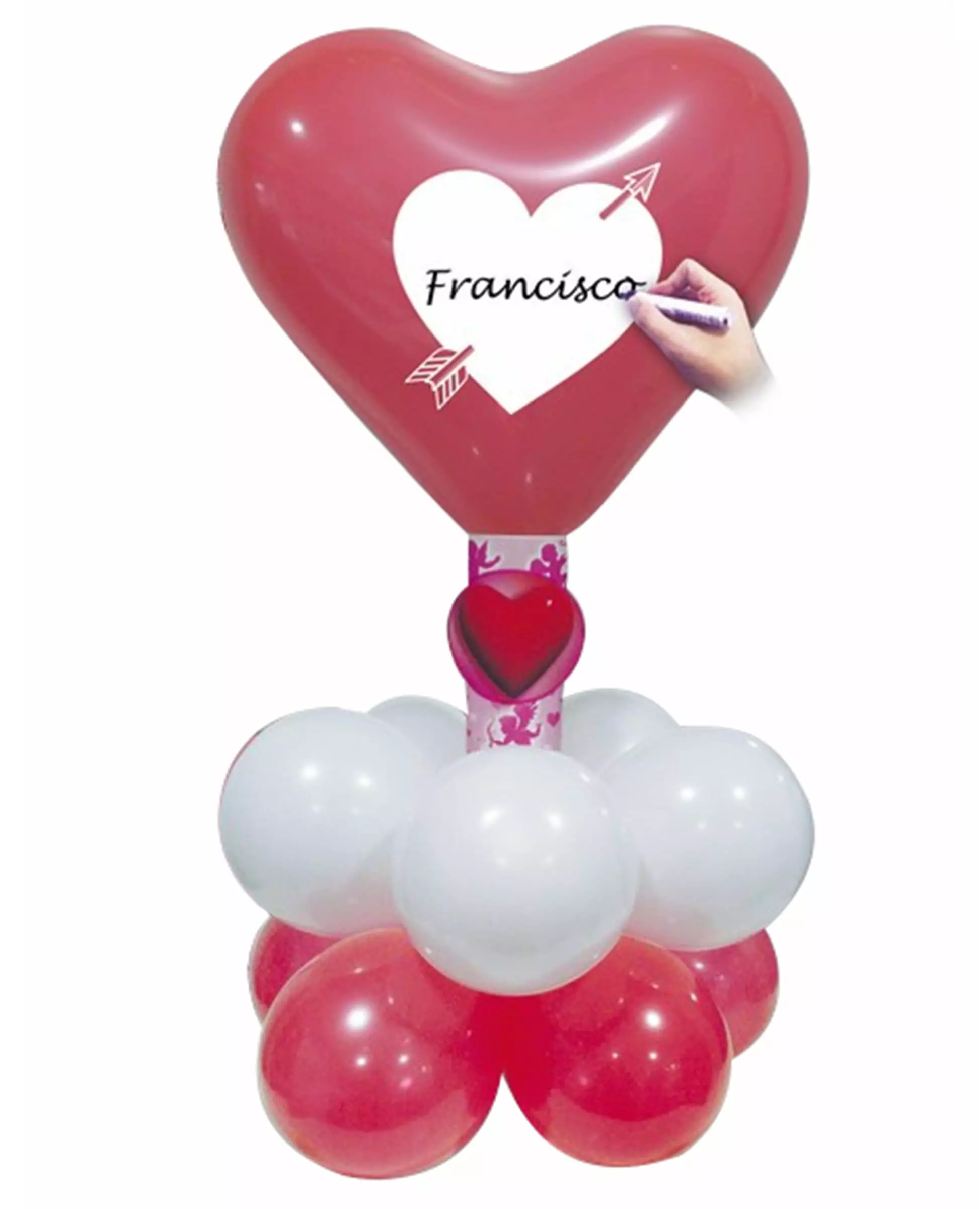 Du er forelsket, dekorer i rødt og hvitt! Dette settet inneholder 2 tilpassbare hjerteformede røde ballonger, 5 røde ballonger og 5 hvite ballonger og tilbehør for å fikse komposisjonen. Ballongene med en diameter på 12 cm er laget av naturgummilateks og kan blåses opp med en ballongpumpe. Dette settet vil være perfekt for dine kjærlighetstema-arrangementer. Inkludert tilbehør: 5 røde ballonger 5 hvite ballonger 2 hjerteballonger Materiale: Naturgummilateks