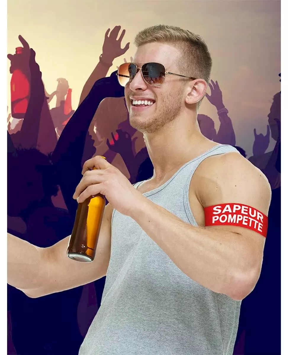 Aperitiffens helt, den berusede versjonen! Dette armbåndet «Sapeur Pompette» er det perfekte humoristiske tilbehøret for å stolt vise frem rollen din på store fester. Med sin knallrøde bakgrunn og slående hvite inskripsjon er det enkelt å bære rundt armen takket være det myke og lette materialet. Ideelt for å skille seg ut mens du viser frem din andre grad. Perfekt for et utdrikningslag, en full kveld med venner eller en festival, dette armbåndet gir et morsomt preg som definitivt vil treffe blink. Materiale: Polyester. Inkludert tilbehør: 1 armbånd